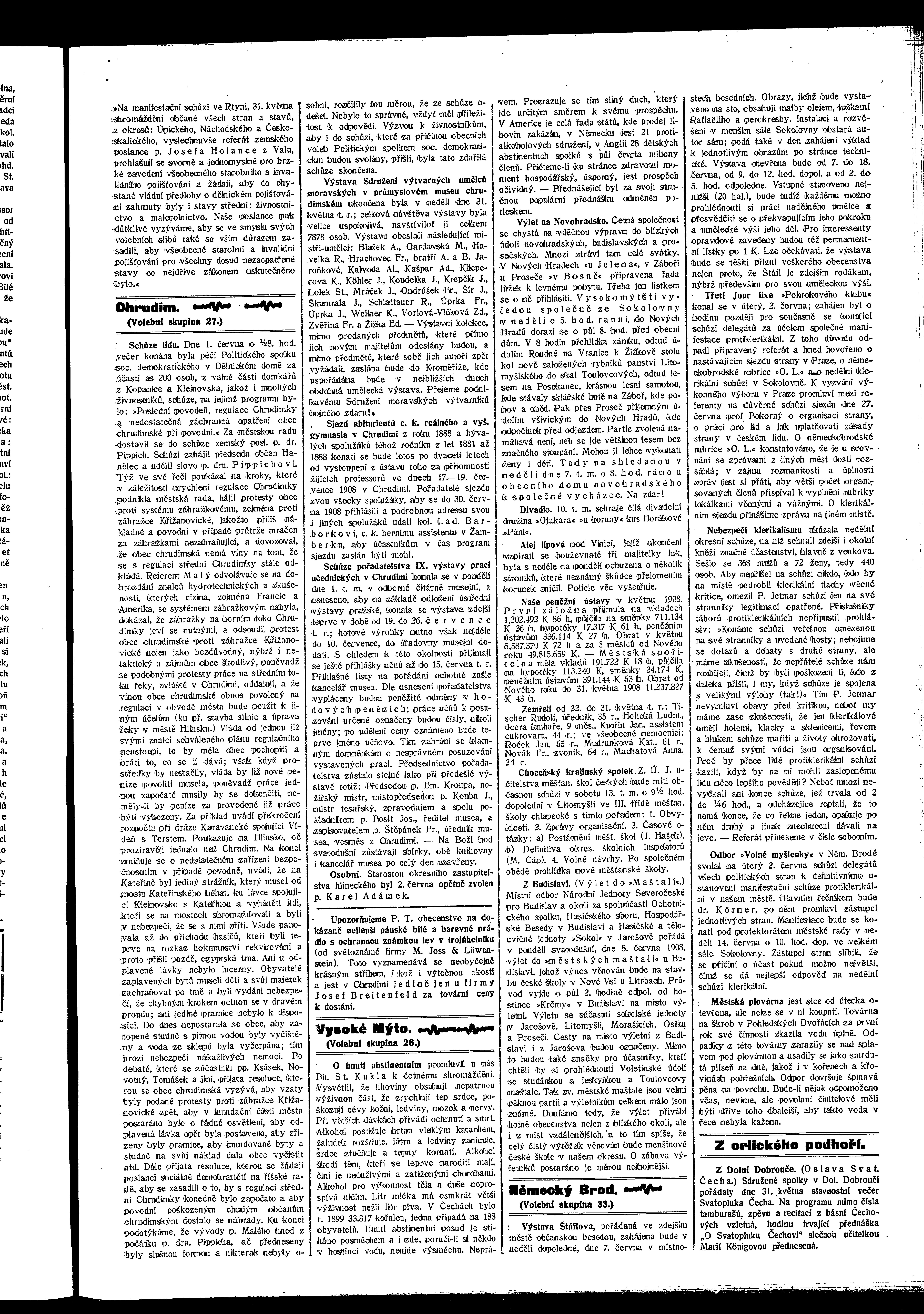 * Datum vydání výtisku: 4.6.1908 Číslo výtisku: 61 Poznámky k výtisku: ranní vydání