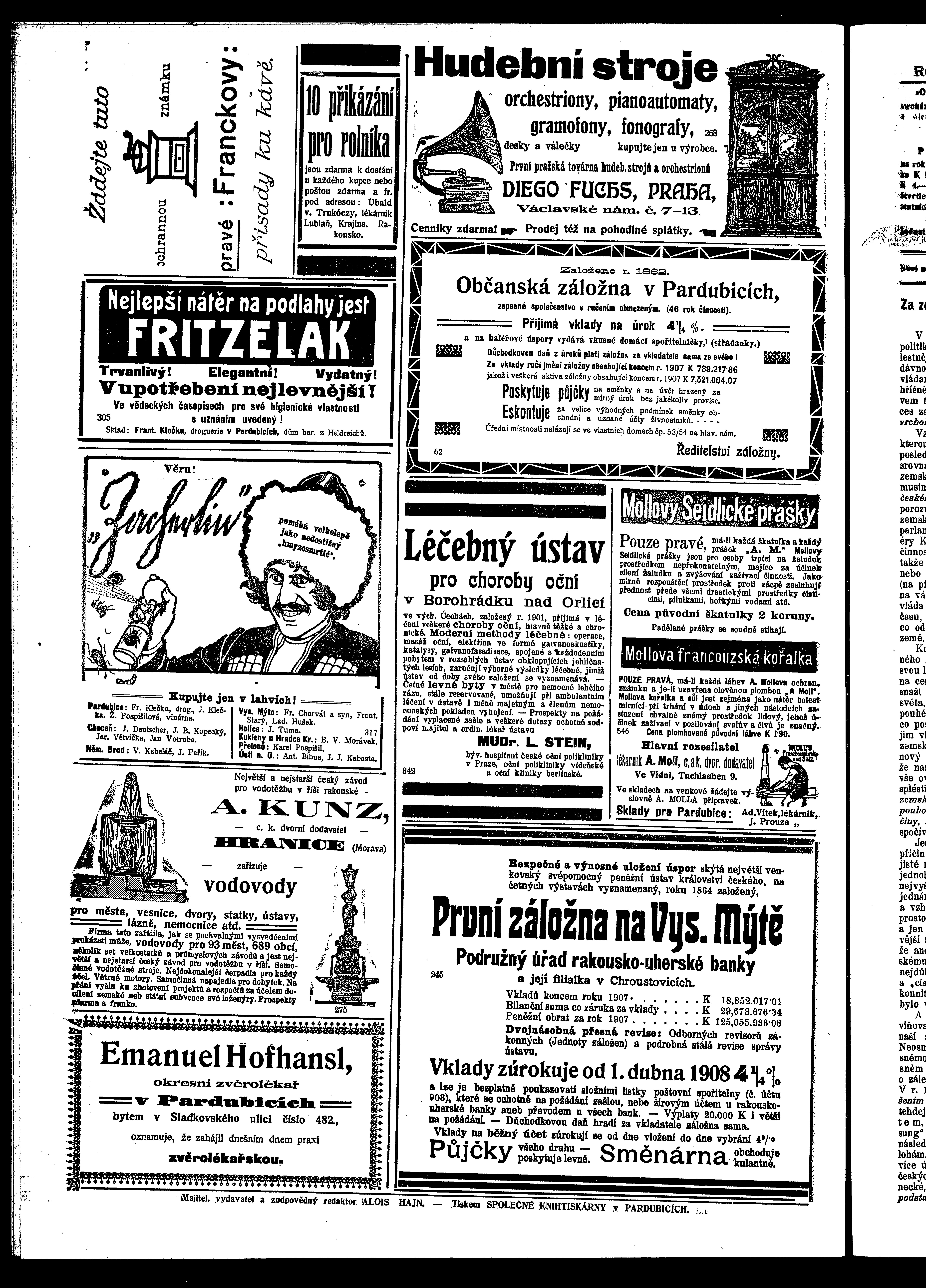 * Datum vydání výtisku: 6.6.1908 Číslo výtisku: 62 Poznámky k výtisku: ranní vydání