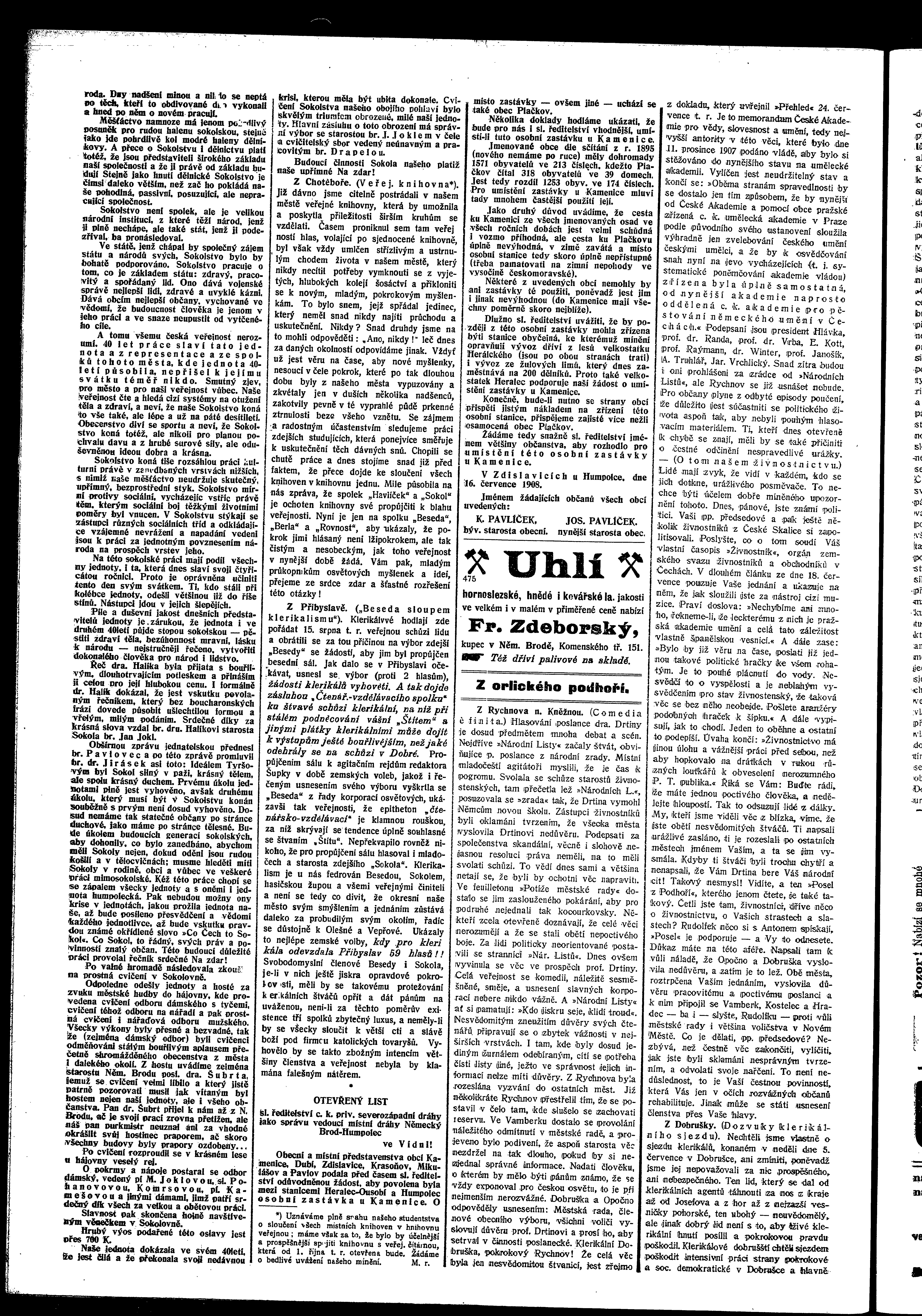 * Datum vydání výtisku: 1.8.1908 Číslo výtisku: 82 Poznámky k výtisku: ranní vydání
