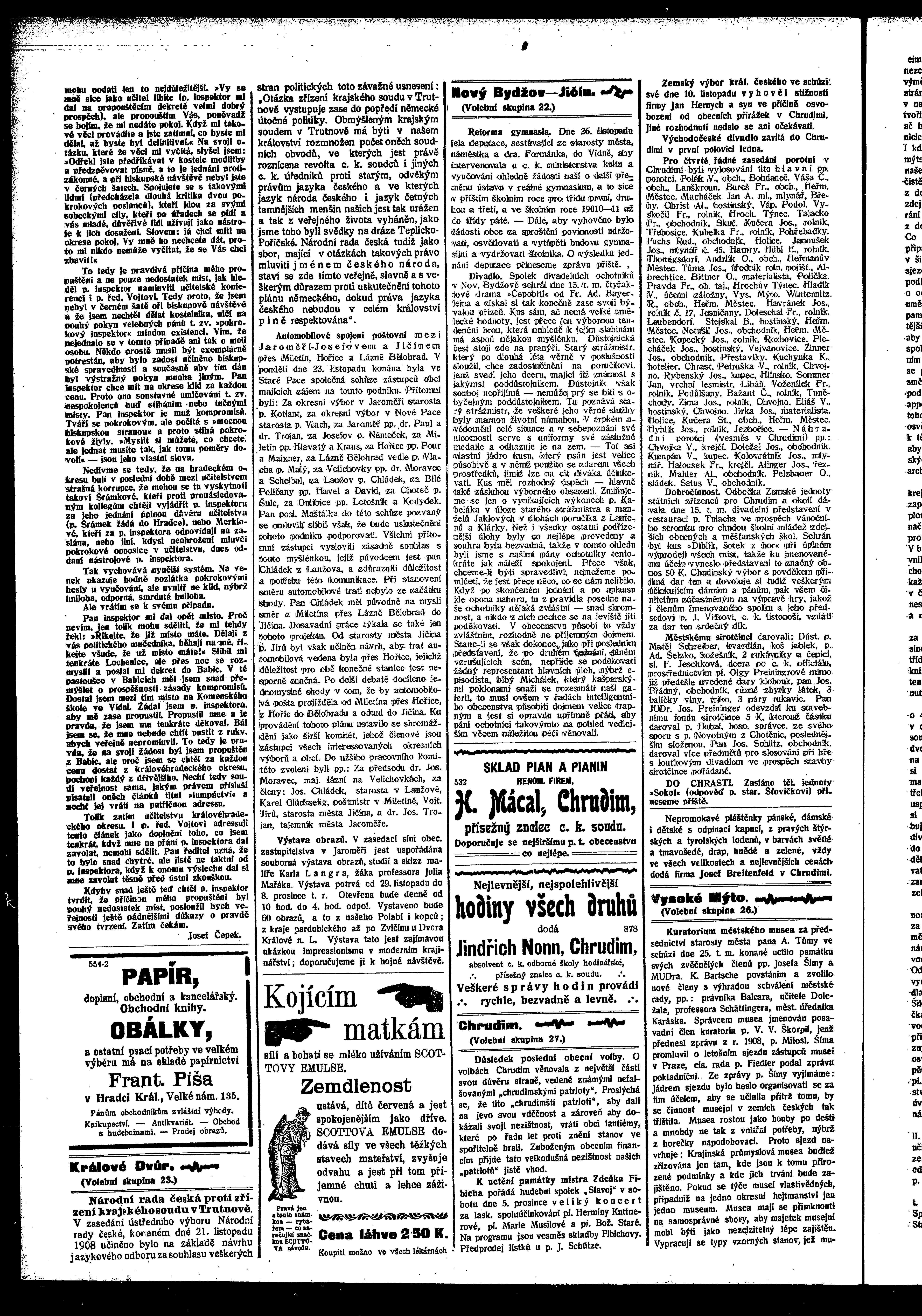 * Datum vydání výtisku: 28.11.1908 Číslo výtisku: 130 Poznámky k výtisku: ranní vydání