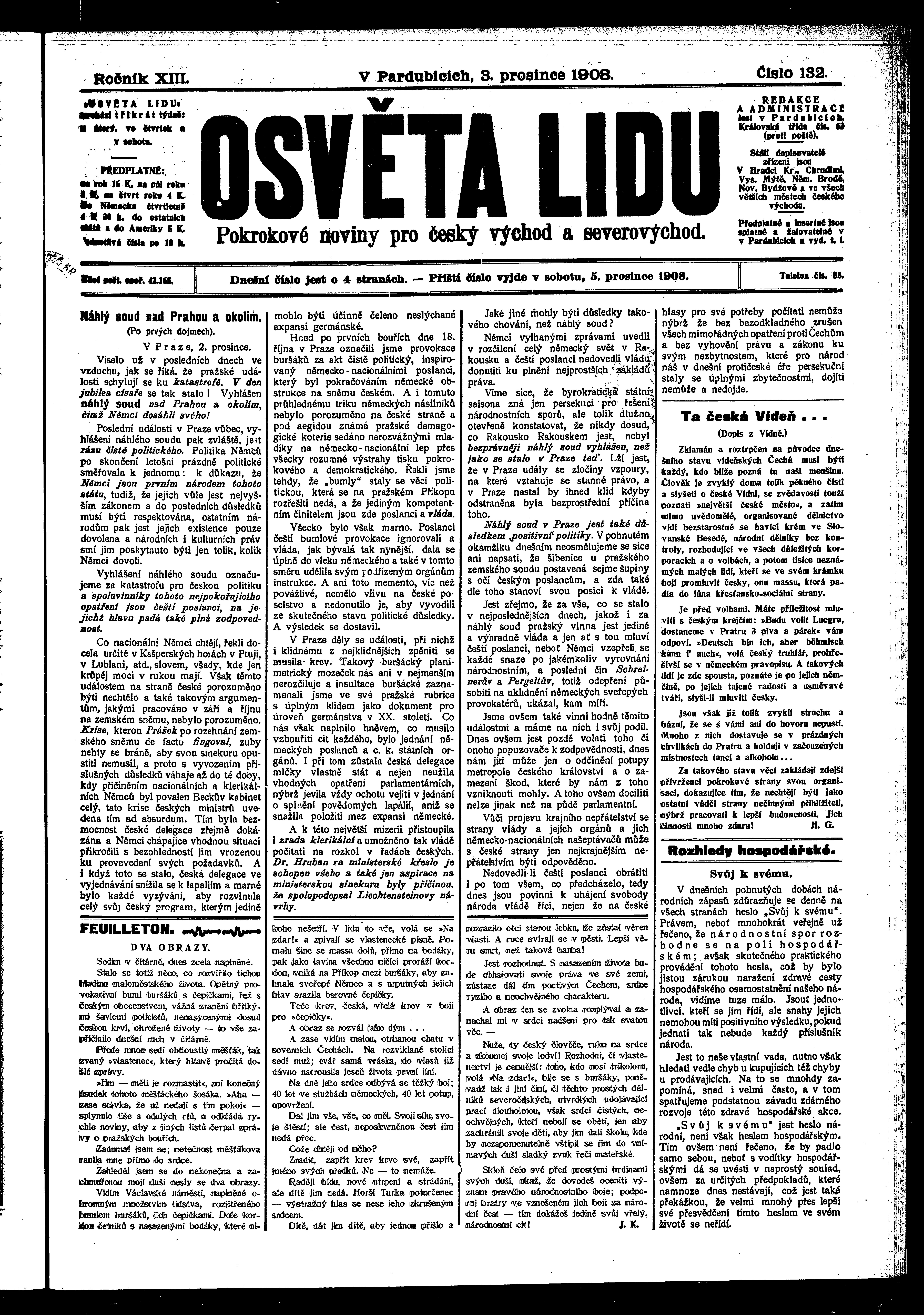 * Datum vydání výtisku: 3.12.1908 Číslo výtisku: 132 Poznámky k výtisku: ranní vydání