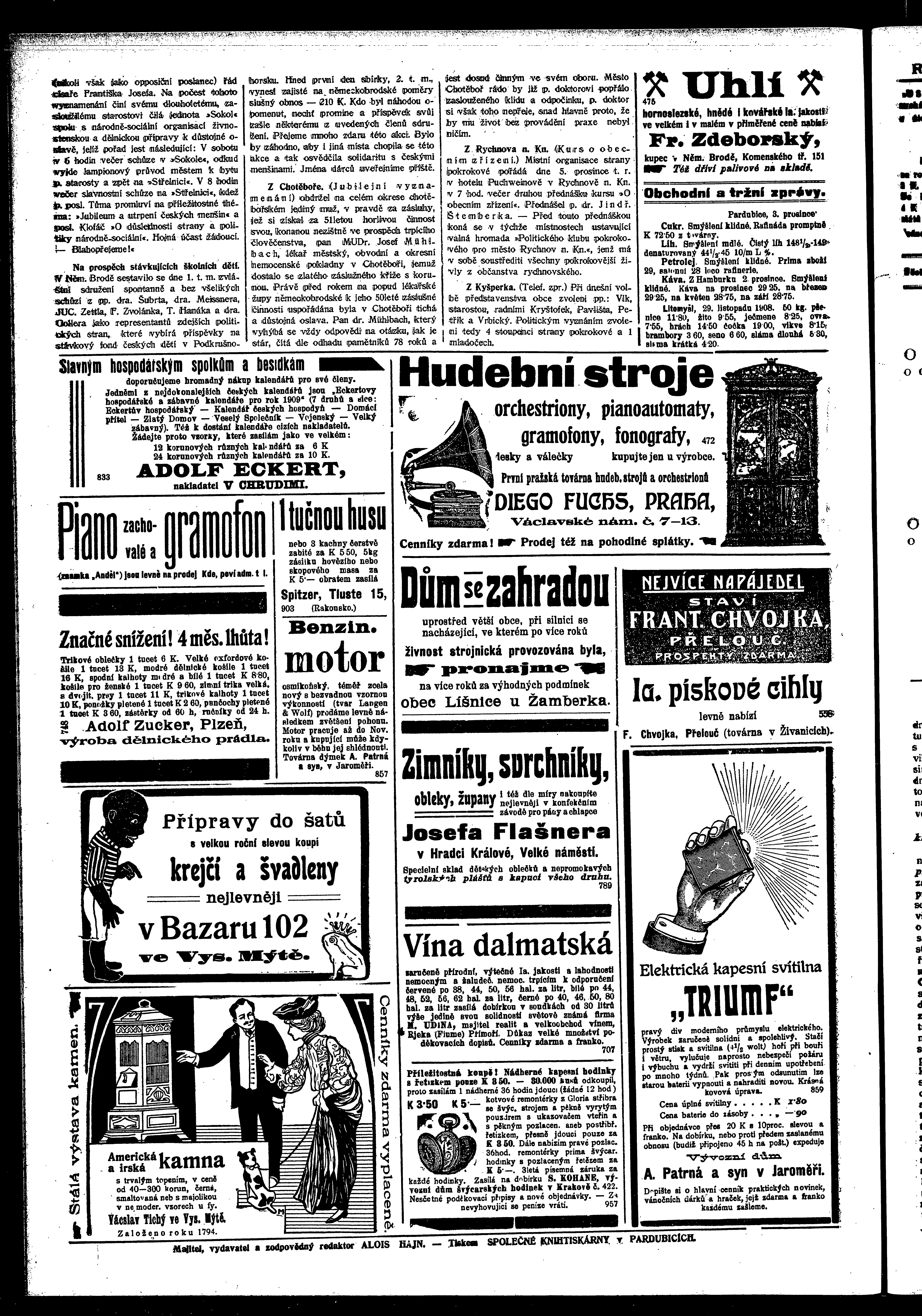 * Datum vydání výtisku: 3.12.1908 Číslo výtisku: 132 Poznámky k výtisku: ranní vydání