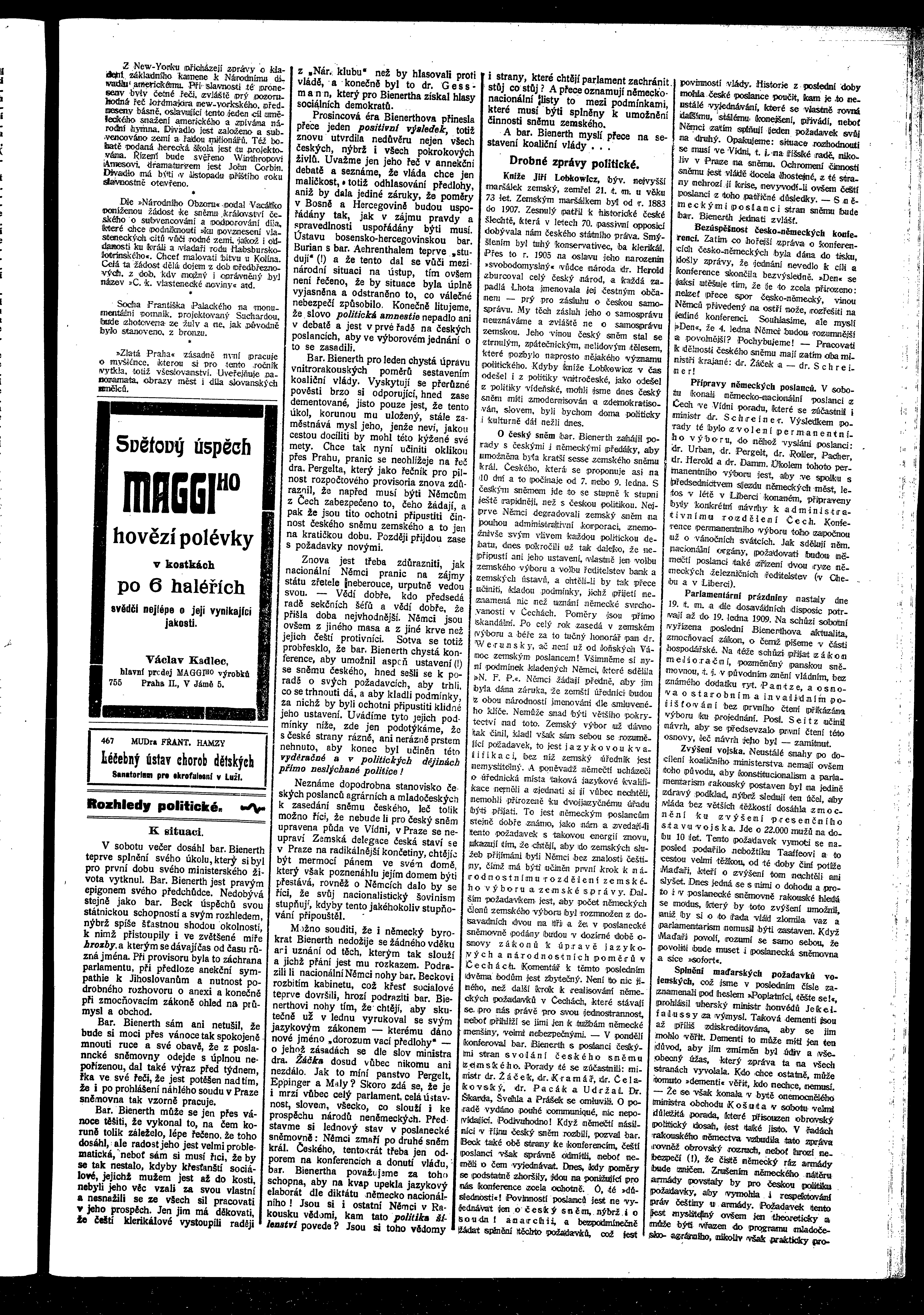 * Datum vydání výtisku: 23.12.1908 Číslo výtisku: 139 Poznámky k výtisku: ranní vydání