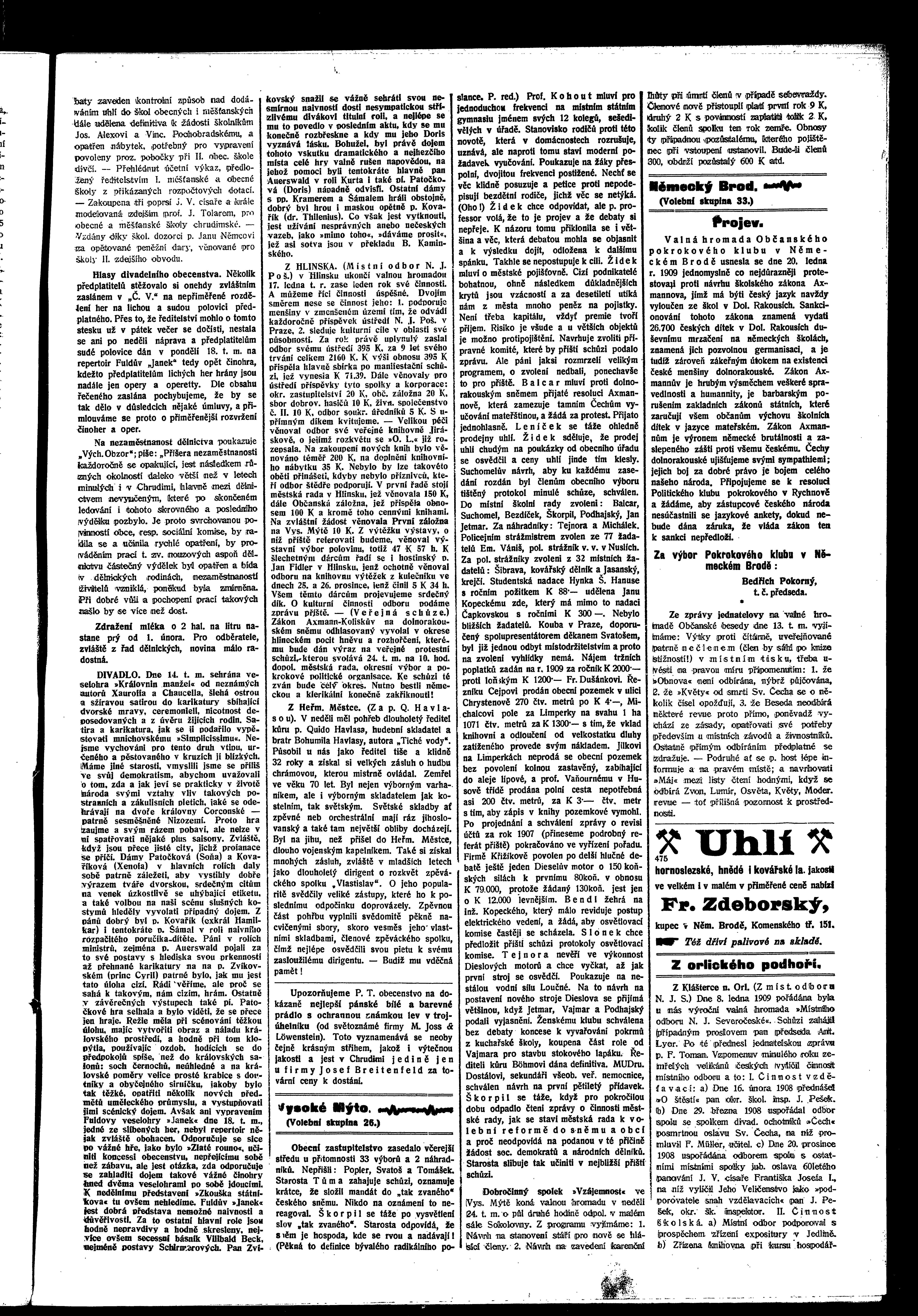 * Datum vydání výtisku: 21.1.1909 Číslo výtisku: 9 Poznámky k výtisku: ranní vydání