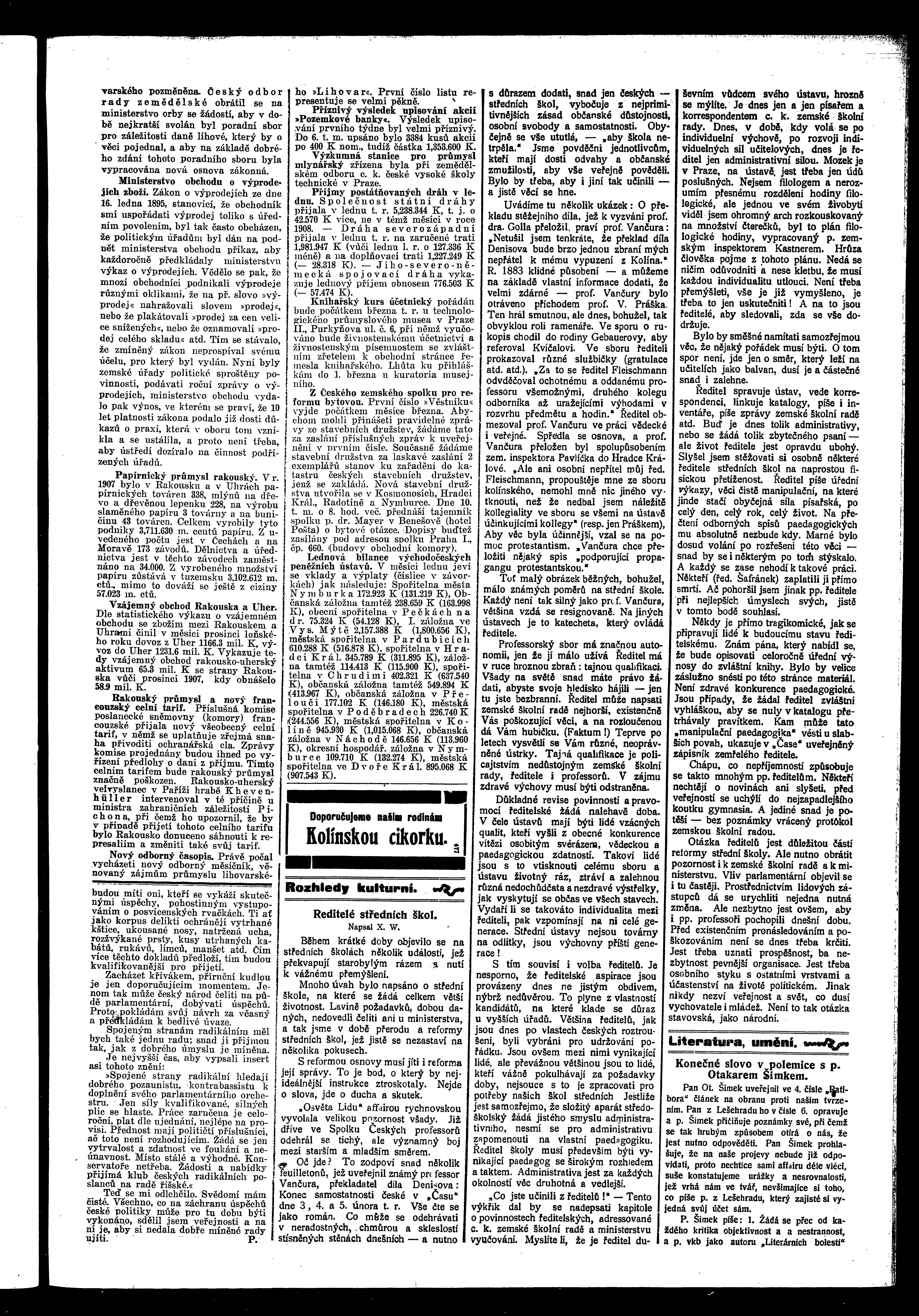 * Datum vydání výtisku: 9.2.1909 Číslo výtisku: 16 Poznámky k výtisku: ranní vydání