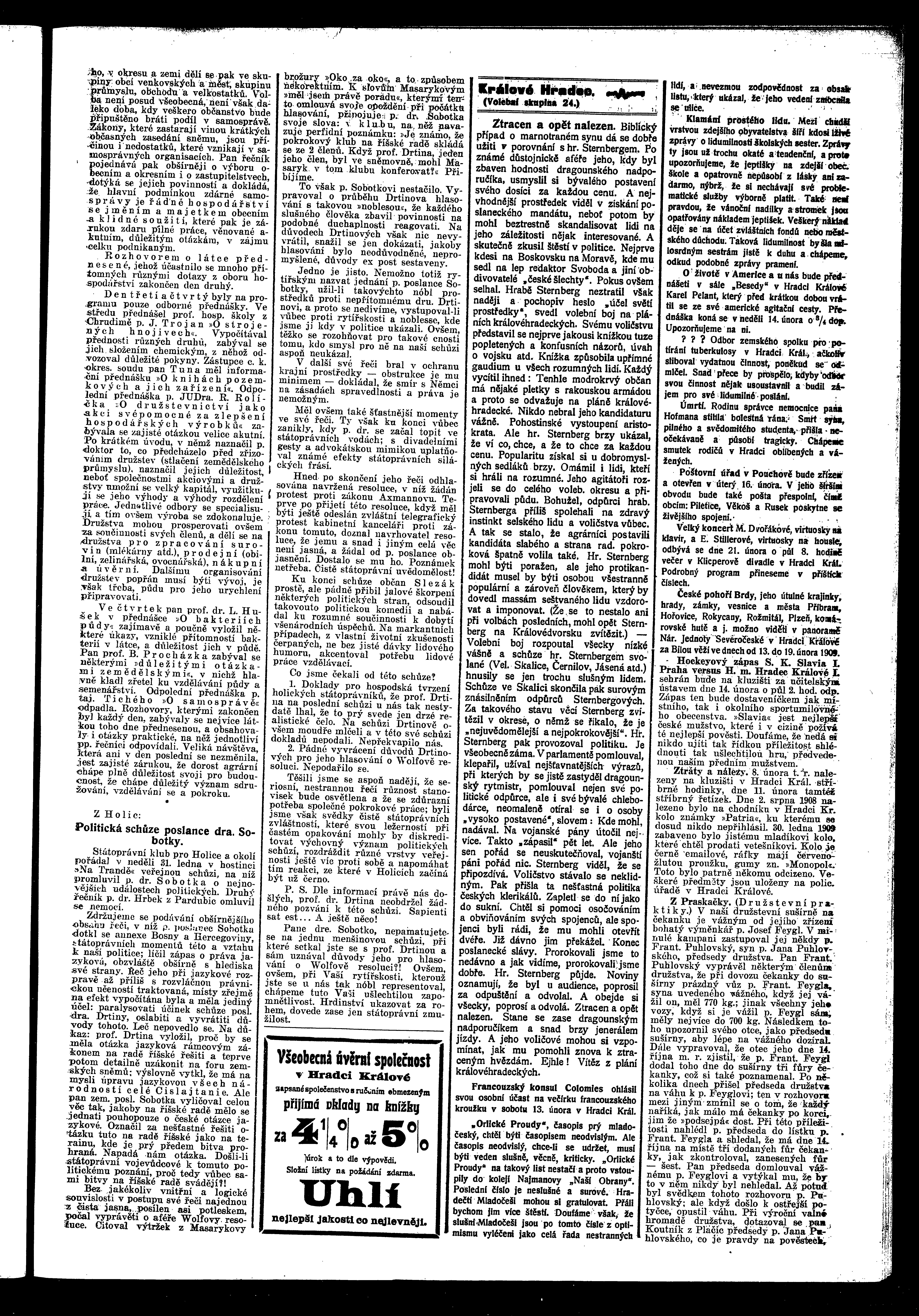 * Datum vydání výtisku: 13.2.1909 Číslo výtisku: 18 Poznámky k výtisku: ranní vydání