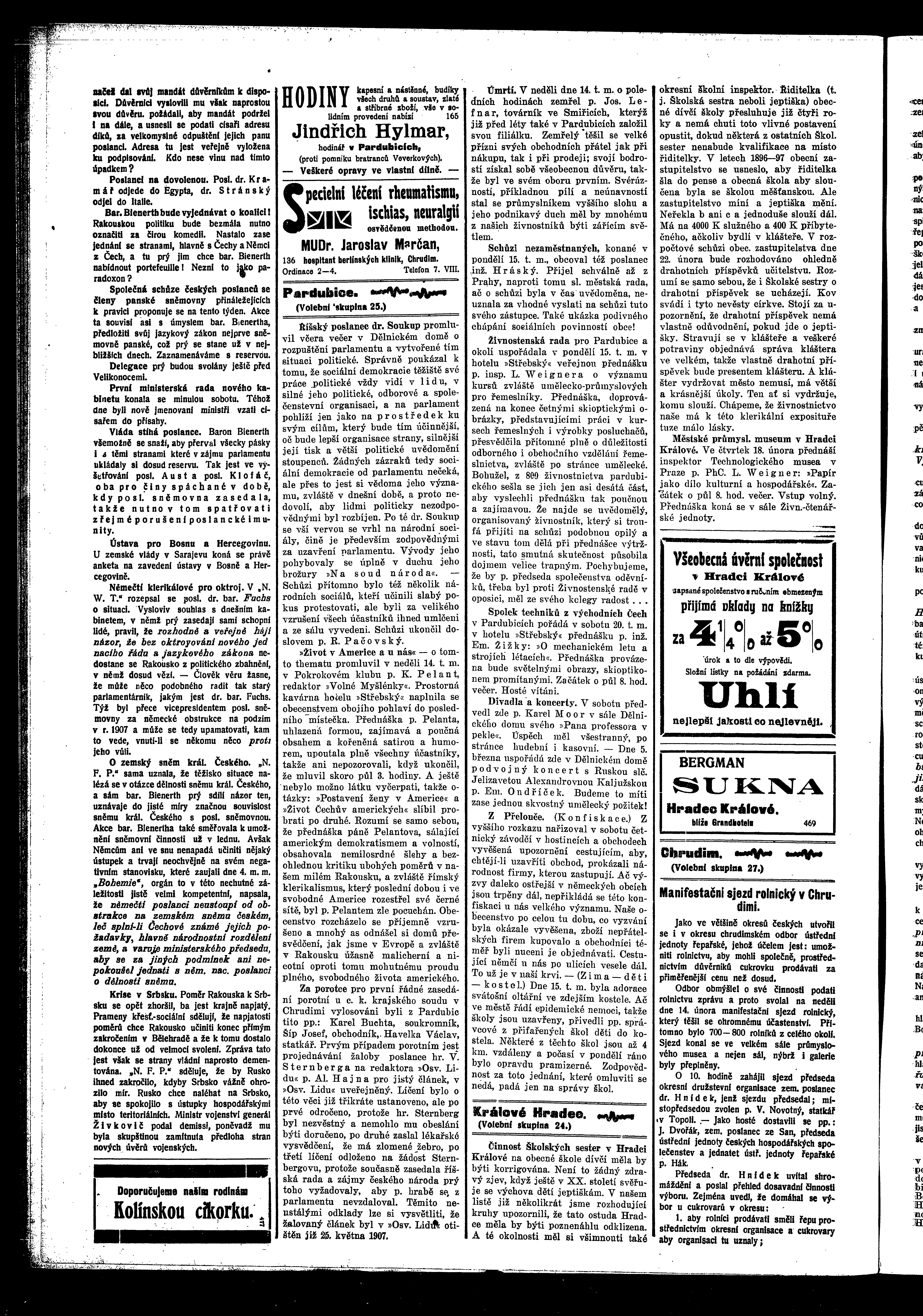 * Datum vydání výtisku: 16.2.1909 Číslo výtisku: 19 Poznámky k výtisku: ranní vydání