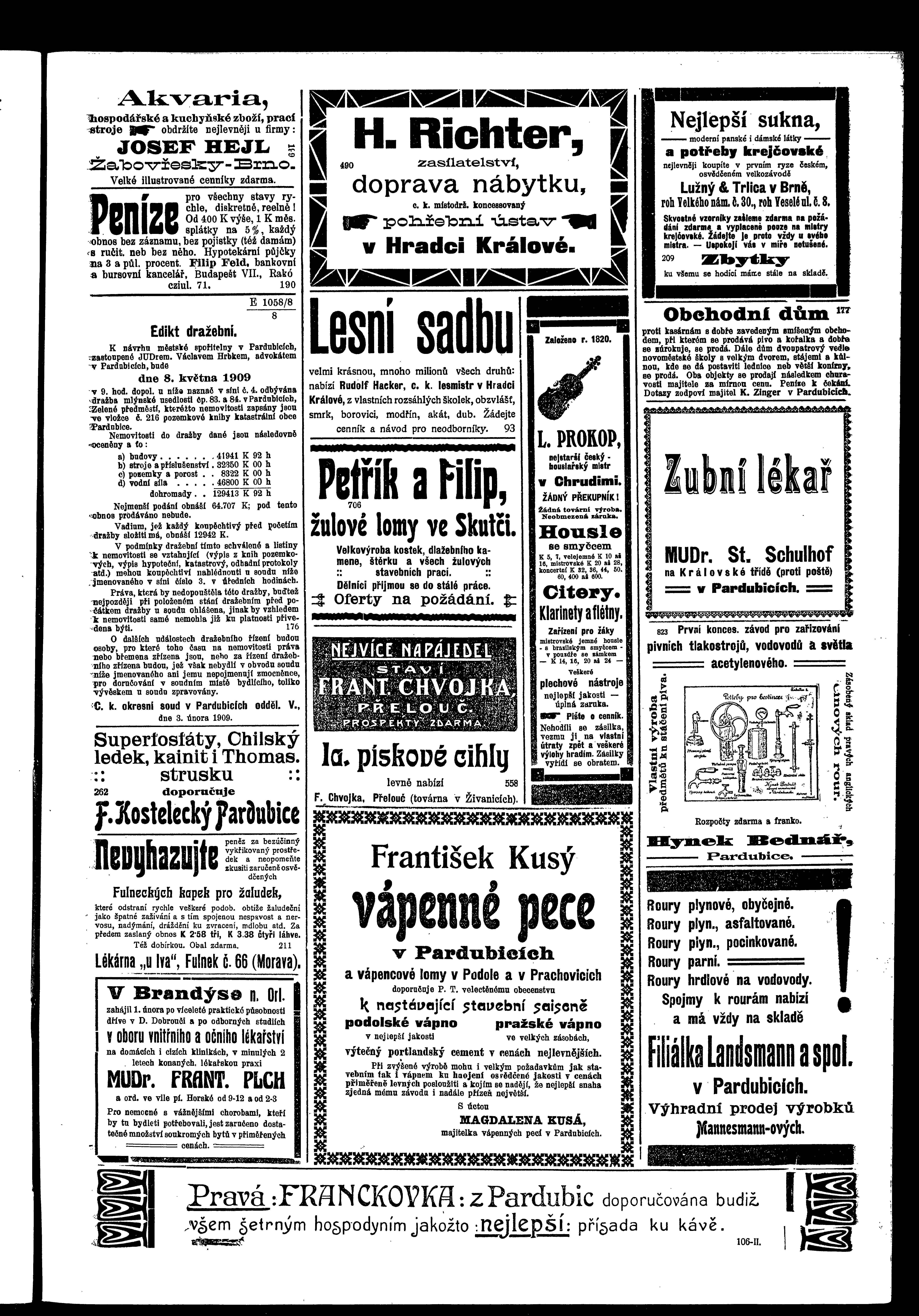 * Datum vydání výtisku: 27.2.1909 Číslo výtisku: 24 Poznámky k výtisku: ranní vydání