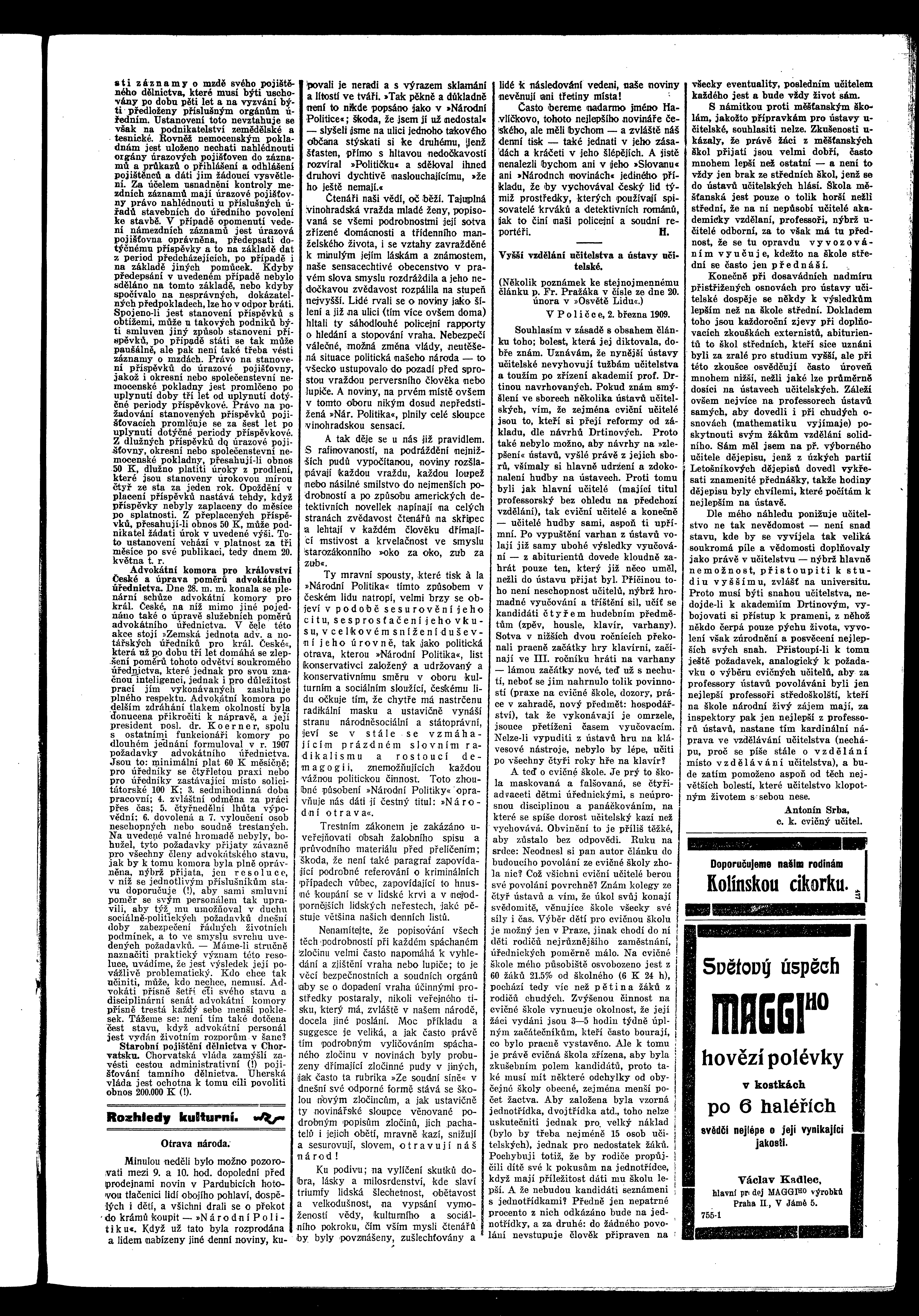 * Datum vydání výtisku: 6.3.1909 Číslo výtisku: 27 Poznámky k výtisku: ranní vydání