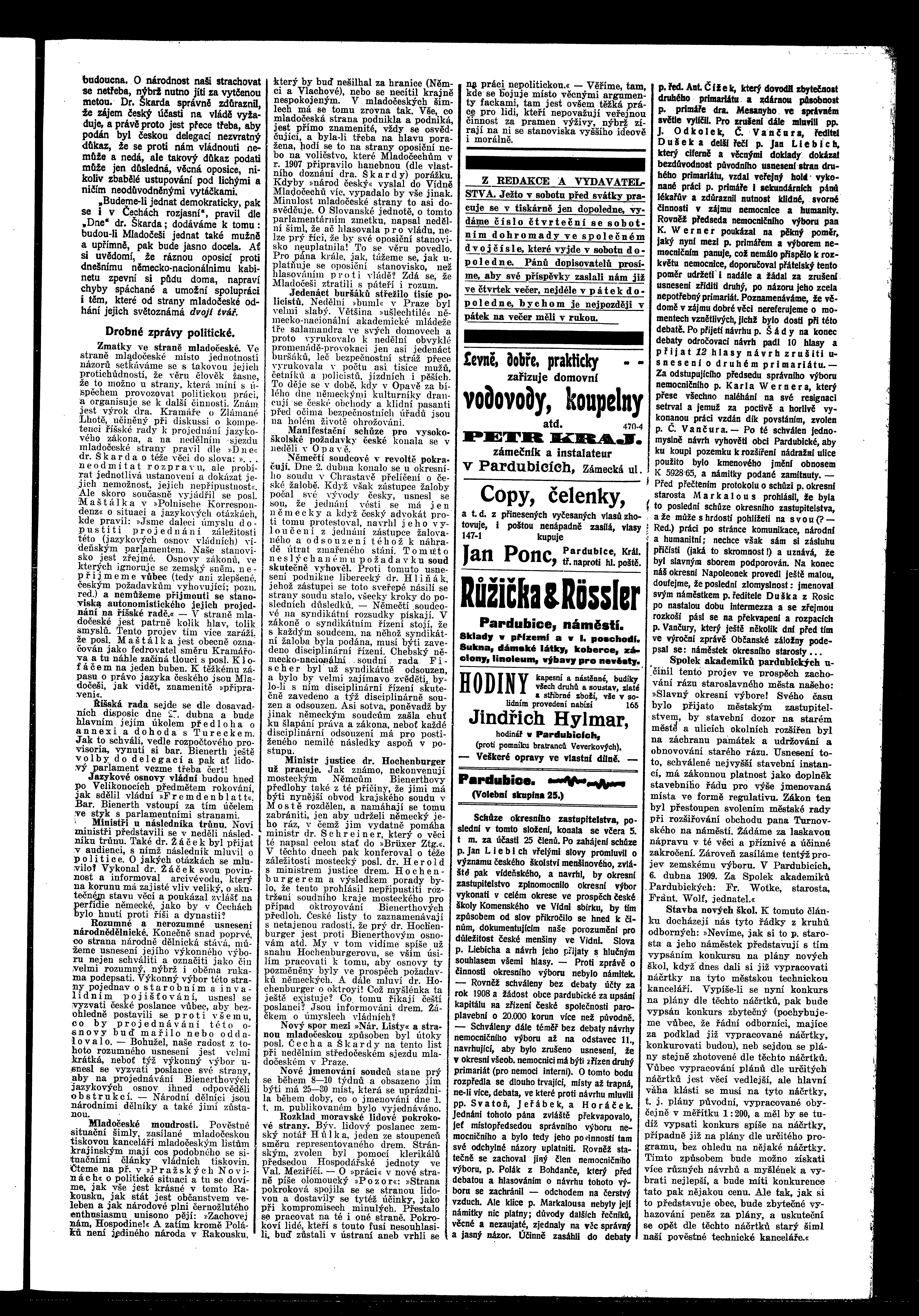 * Datum vydání výtisku: 6.4.1909 Číslo výtisku: 39 Poznámky k výtisku: ranní vydání