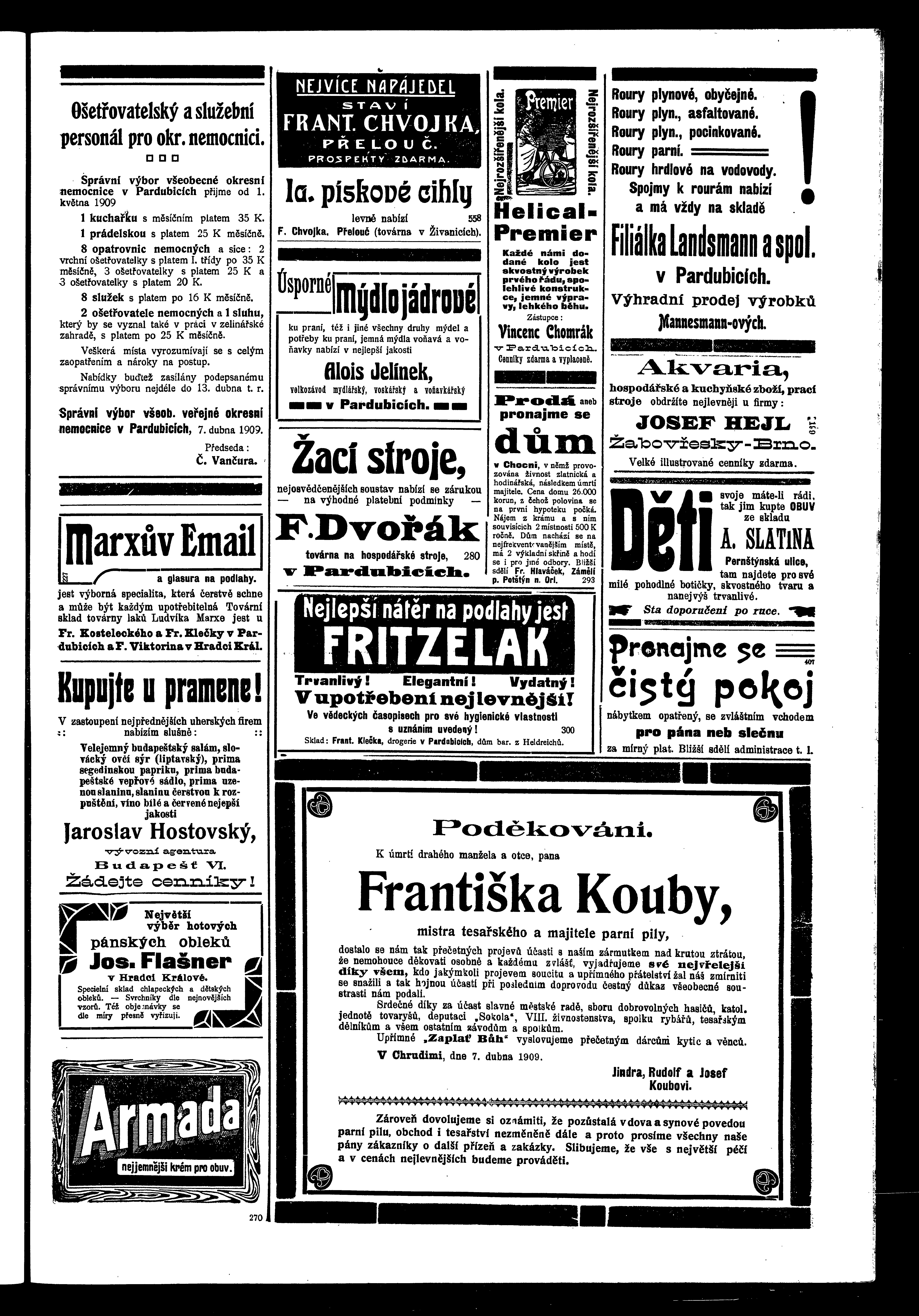 * Datum vydání výtisku: 10.4.1909 Číslo výtisku: 40 Poznámky k výtisku: ranní vydání