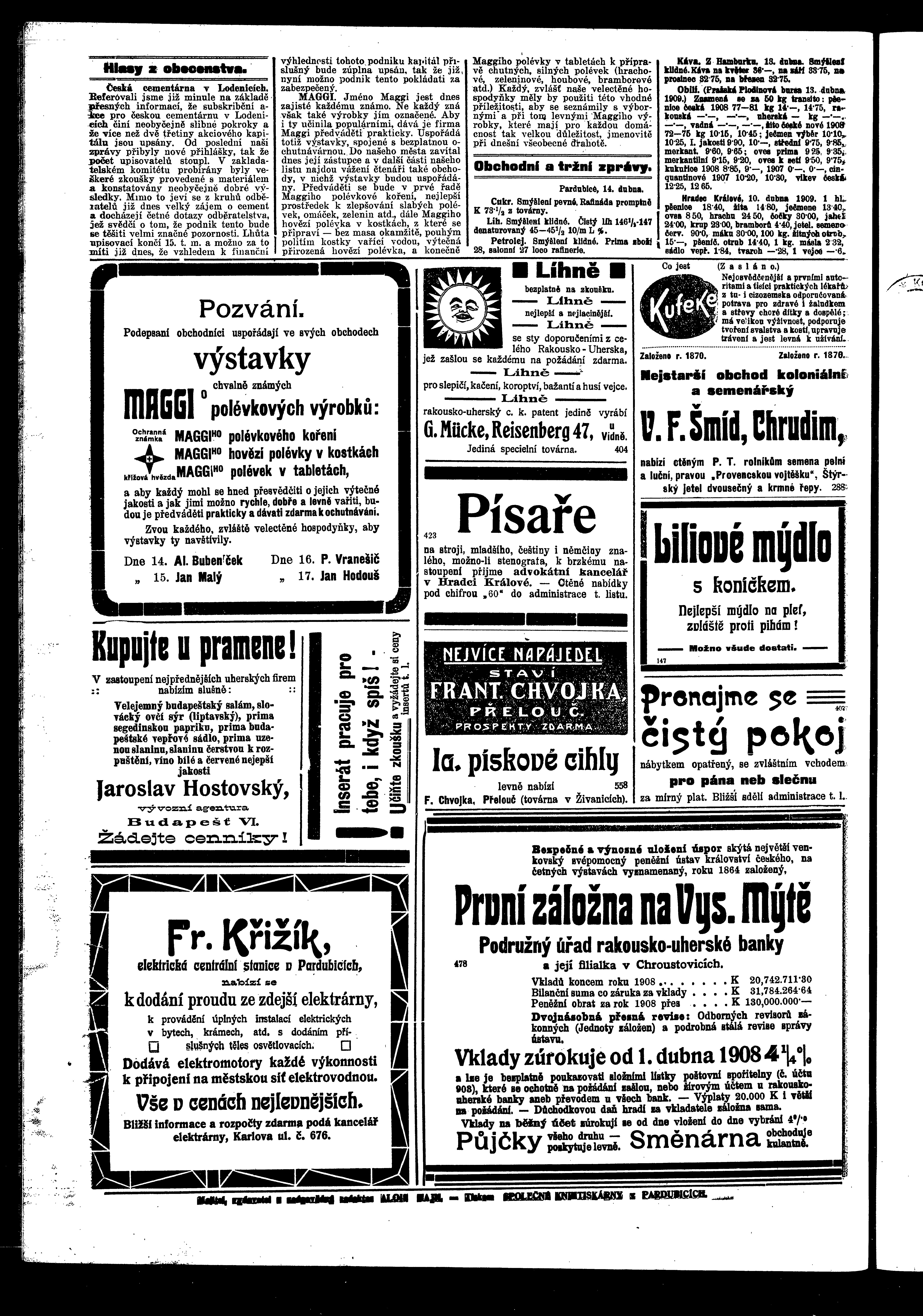 * Datum vydání výtisku: 14.4.1909 Číslo výtisku: 41 Poznámky k výtisku: ranní vydání