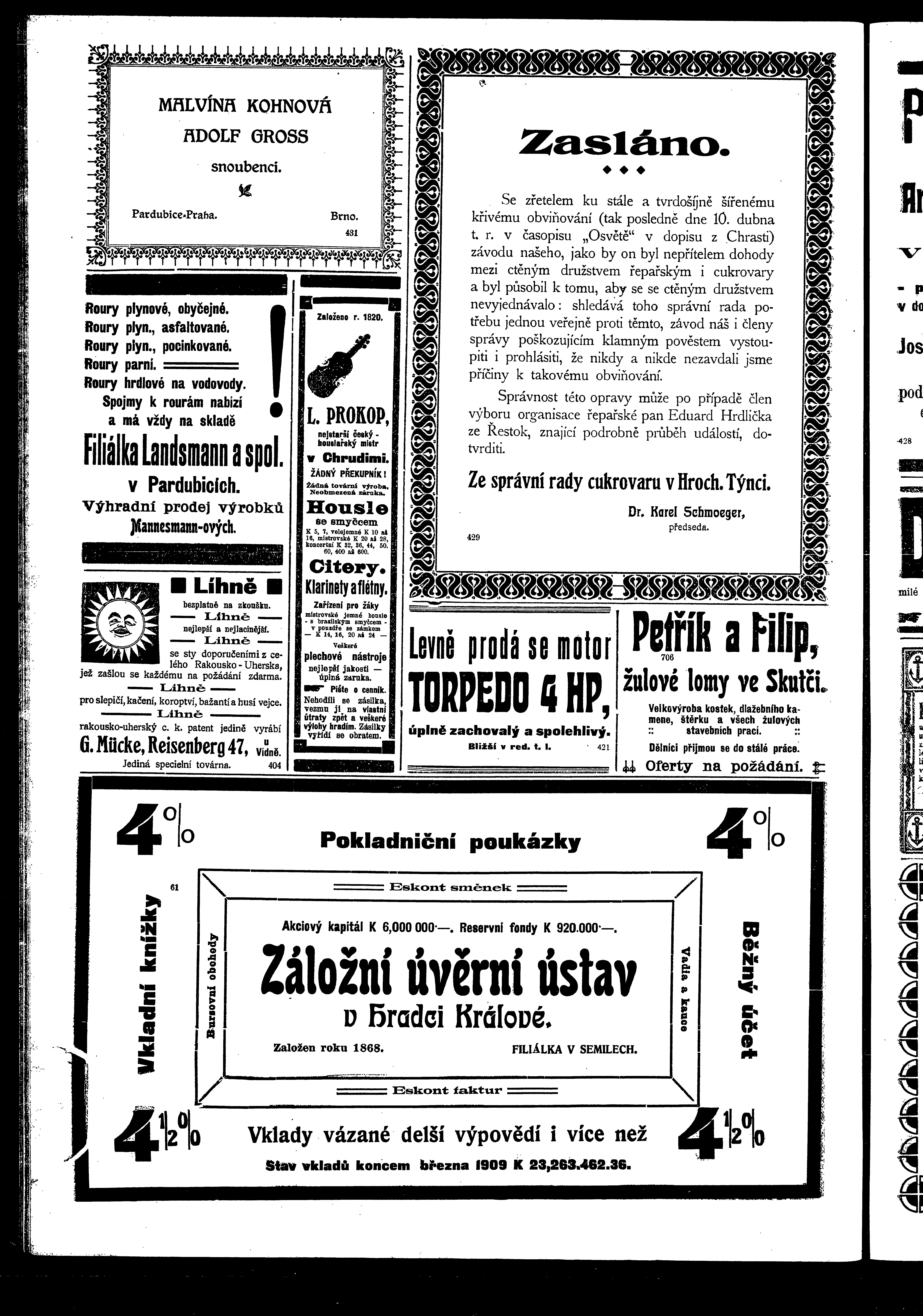* Datum vydání výtisku: 17.4.1909 Číslo výtisku: 42 Poznámky k výtisku: ranní vydání