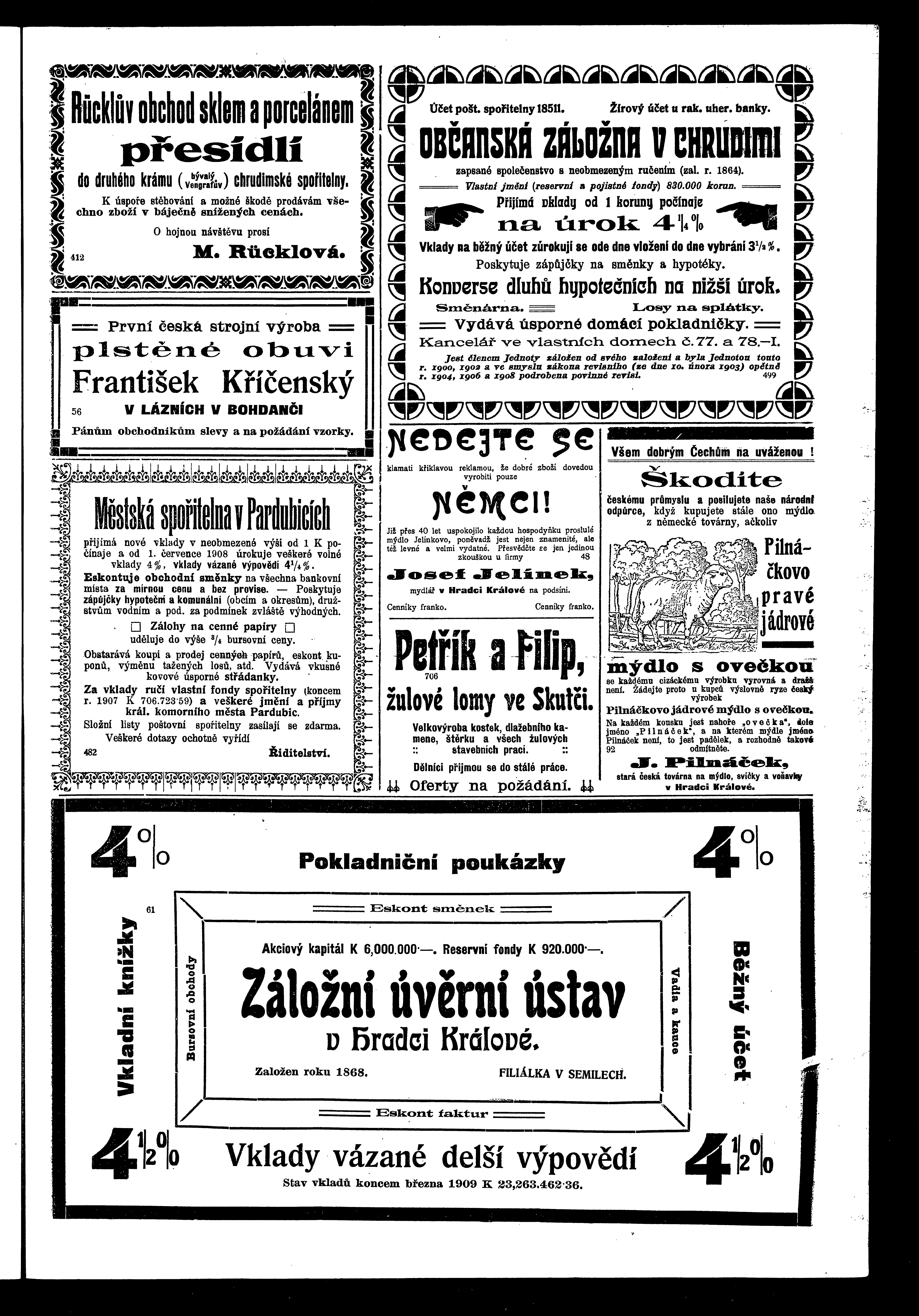 * Datum vydání výtisku: 24.4.1909 Číslo výtisku: 45 Poznámky k výtisku: ranní vydání