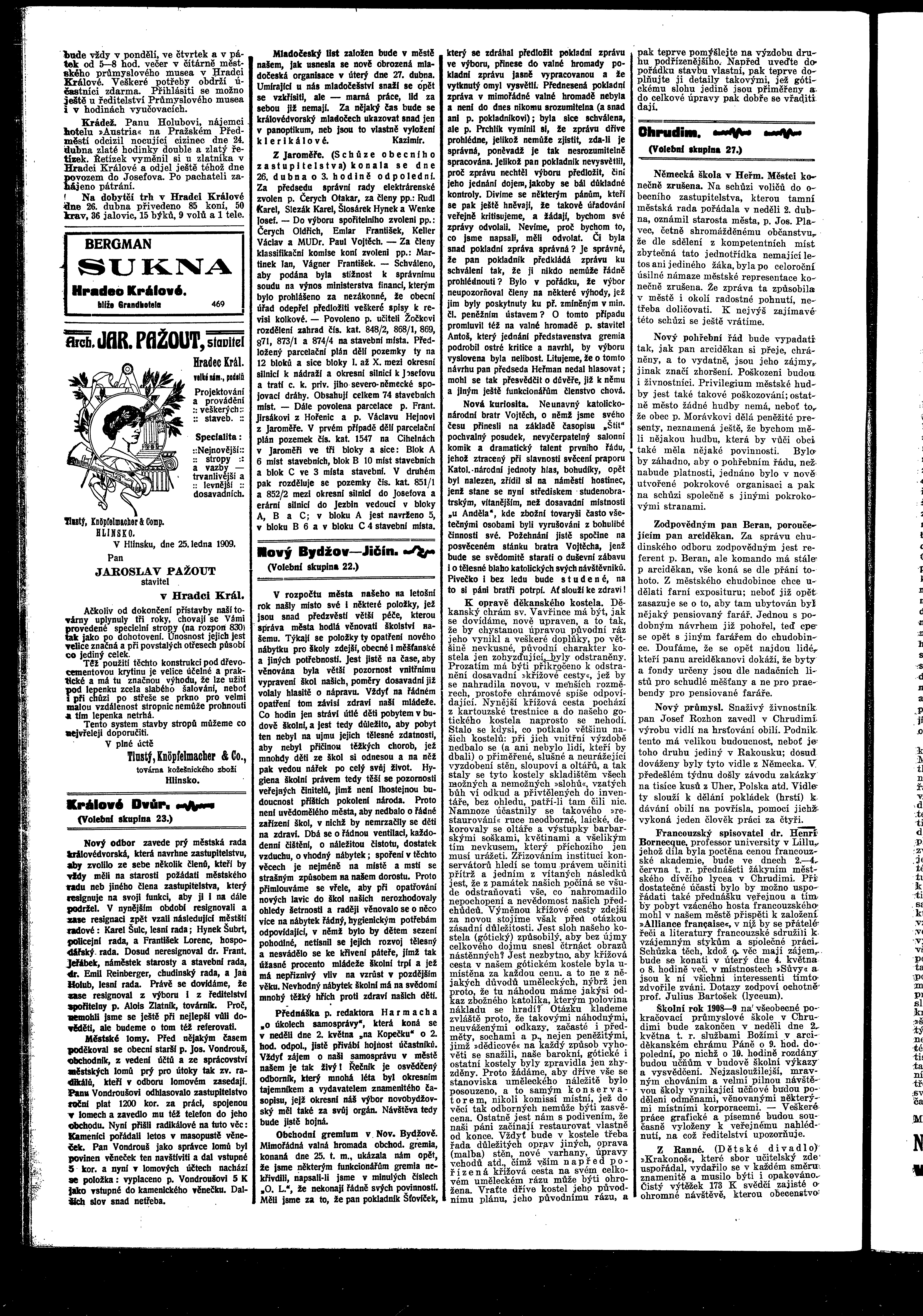 * Datum vydání výtisku: 30.4.1909 Číslo výtisku: 47 Poznámky k výtisku: ranní vydání