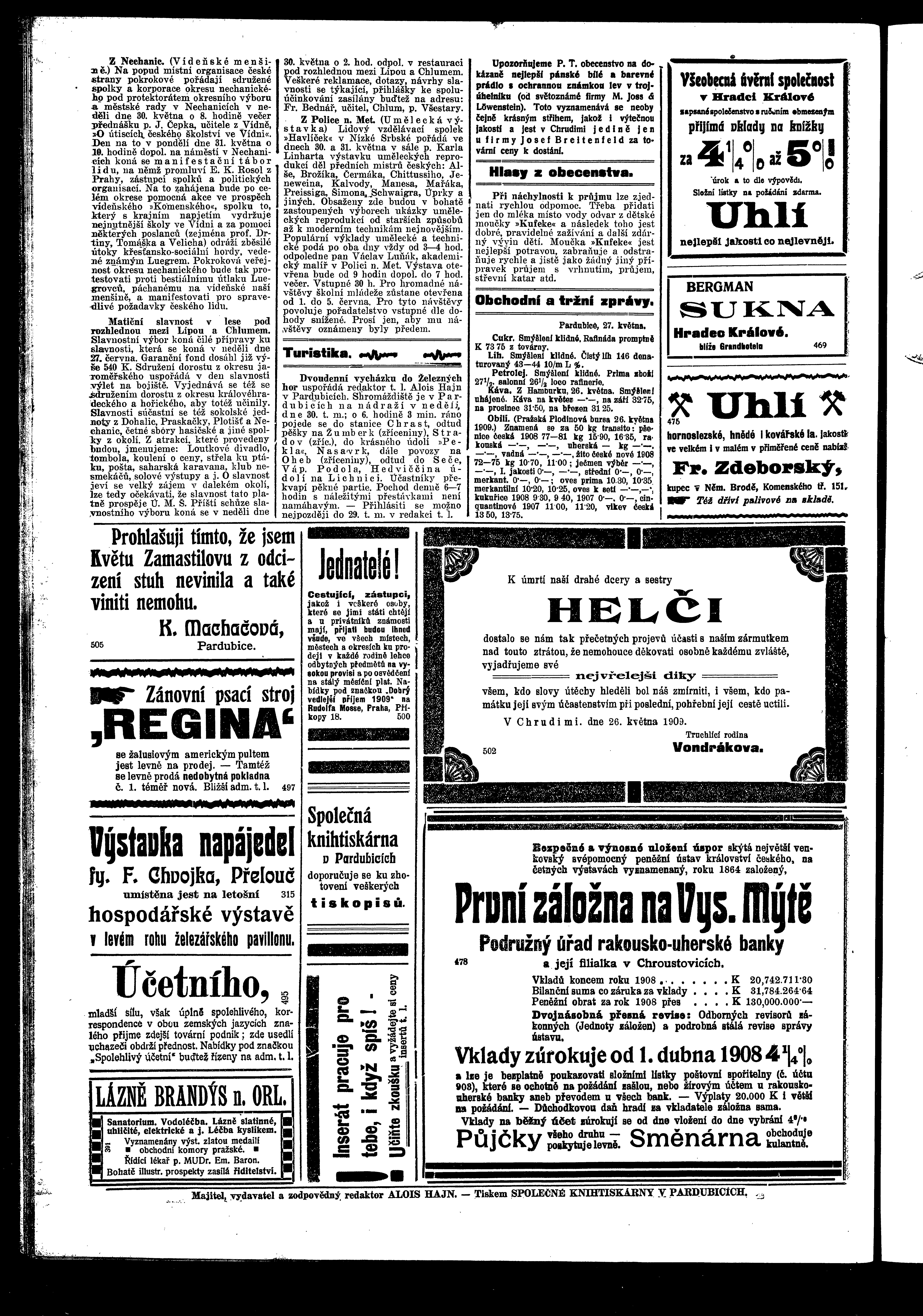 * Datum vydání výtisku: 27.5.1909 Číslo výtisku: 57 Poznámky k výtisku: ranní vydání
