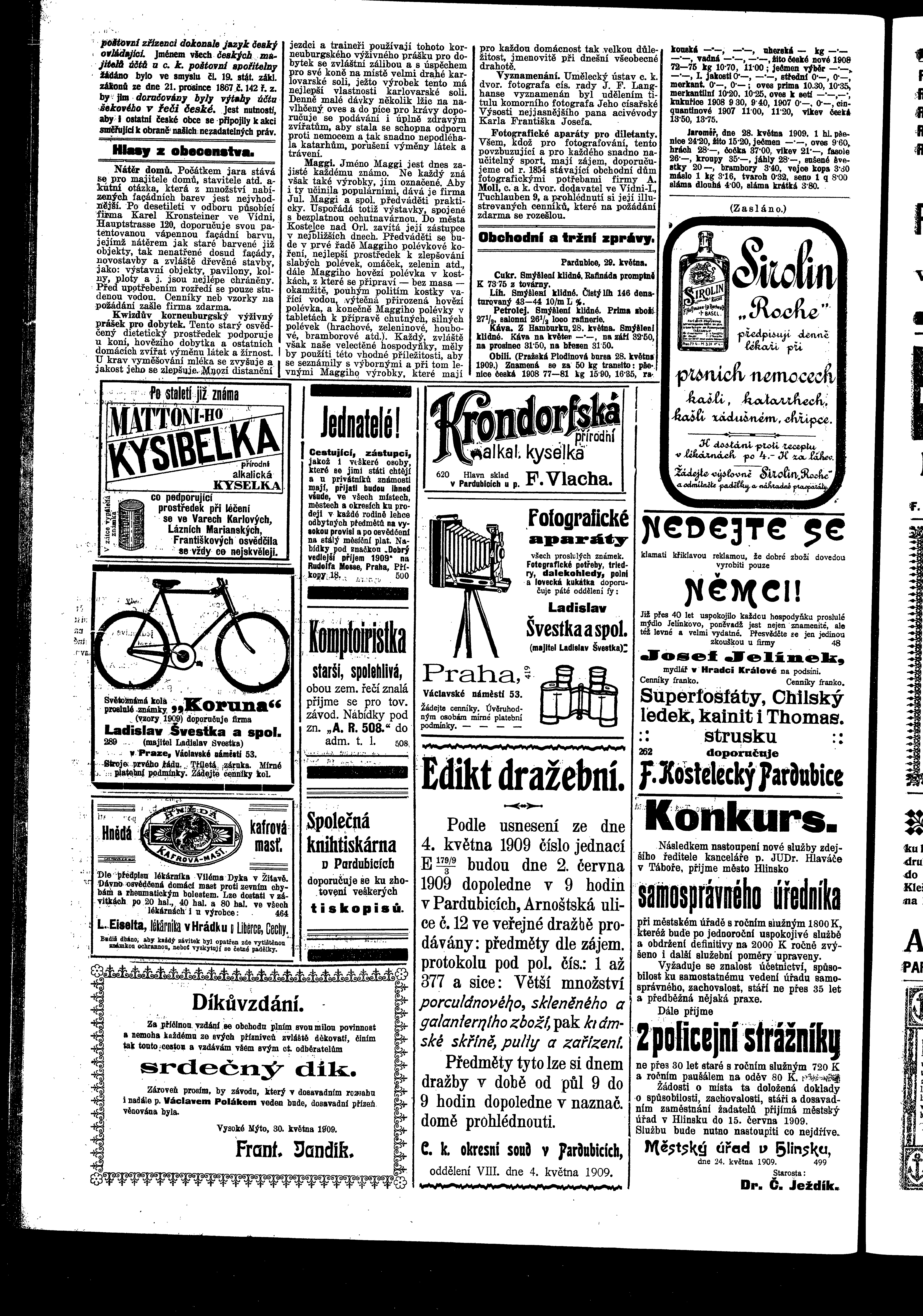 * Datum vydání výtisku: 29.5.1909 Číslo výtisku: 58 Poznámky k výtisku: ranní vydání