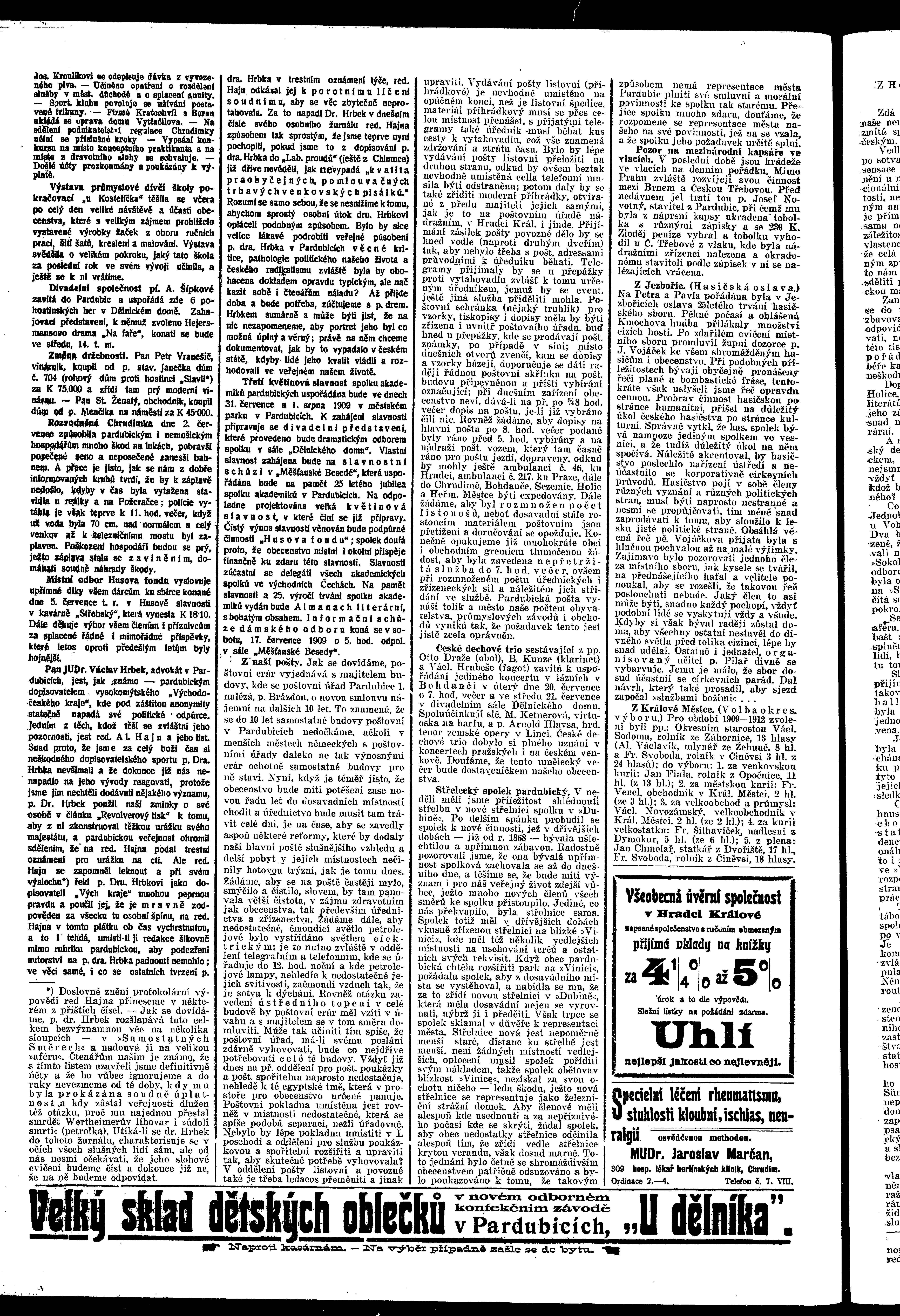 * Datum vydání výtisku: 12.7.1909 Číslo výtisku: 73 - 74 Poznámky k výtisku: ranní vydání
