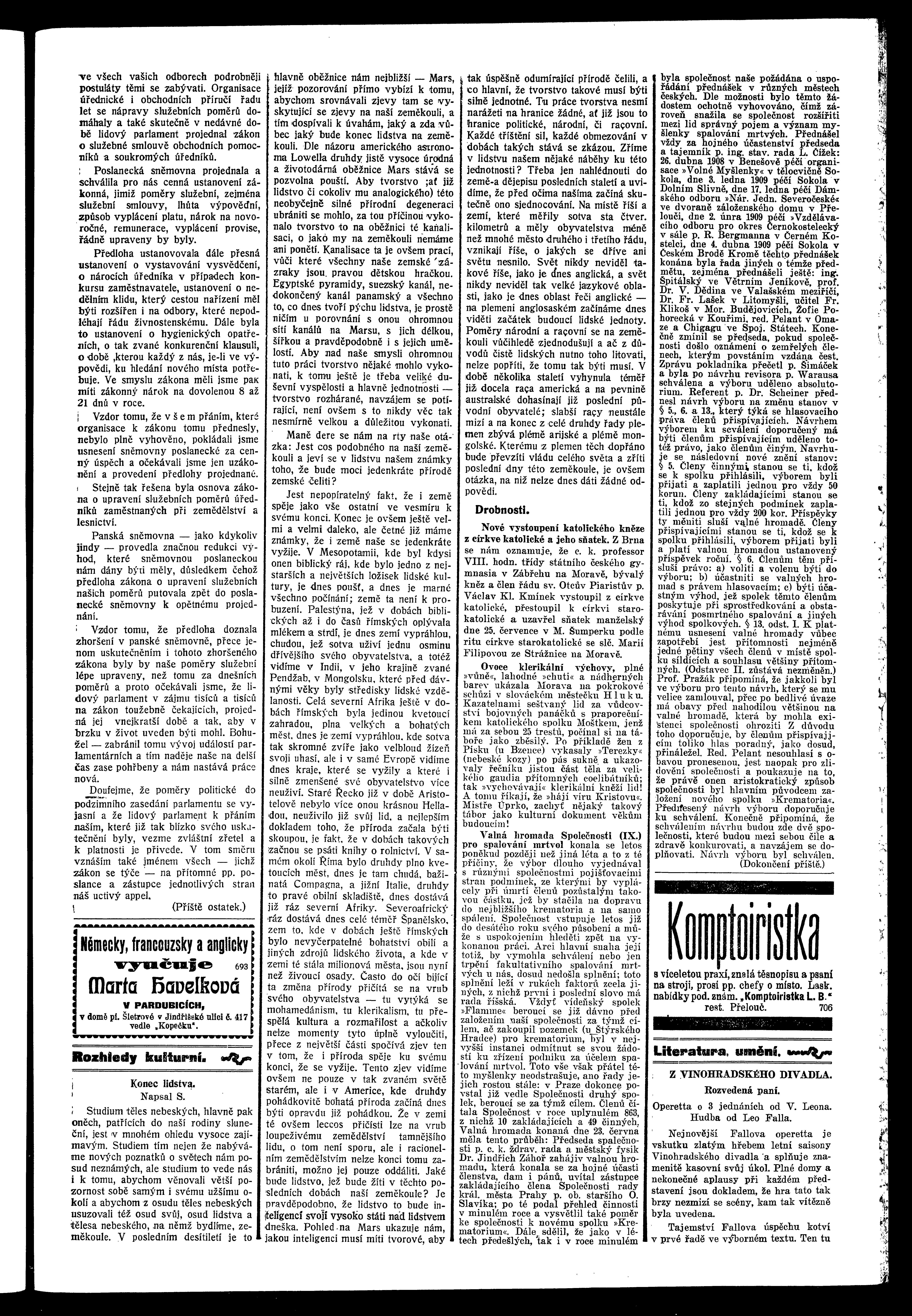 * Datum vydání výtisku: 7.8.1909 Číslo výtisku: 84 Poznámky k výtisku: ranní vydání