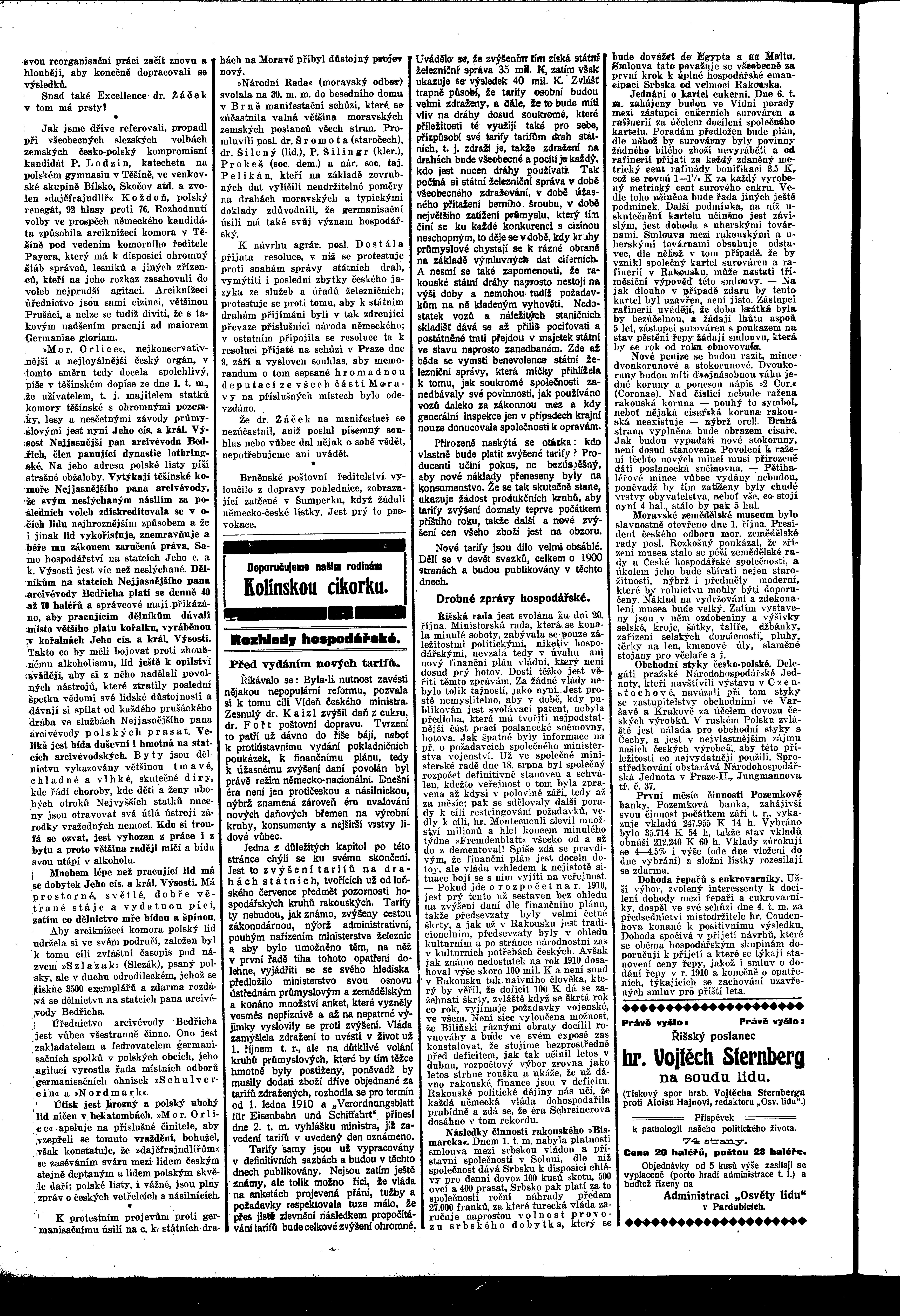 * Datum vydání výtisku: 5.10.1909 Číslo výtisku: 106 Poznámky k výtisku: ranní vydání