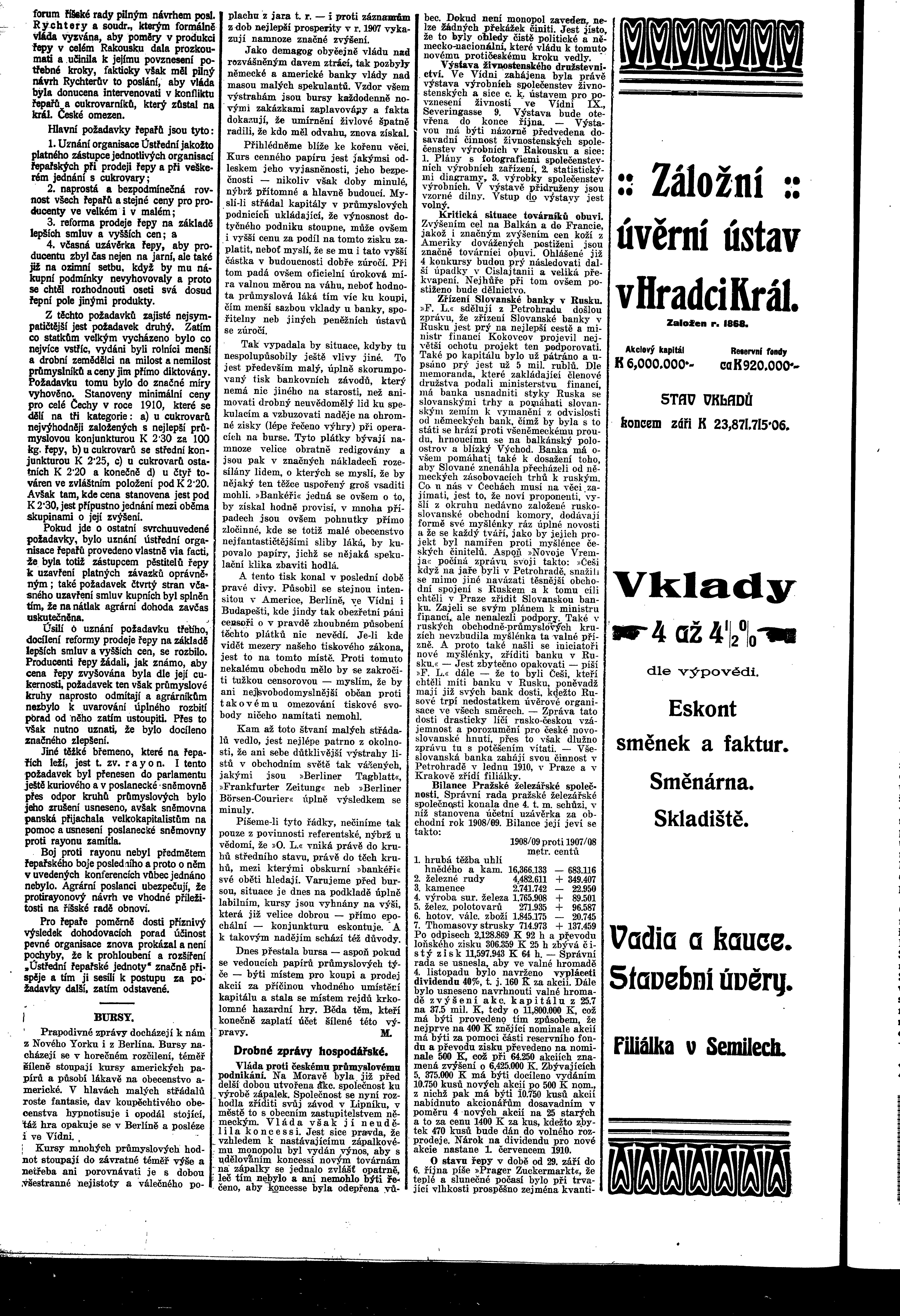 * Datum vydání výtisku: 9.10.1909 Číslo výtisku: 108 Poznámky k výtisku: ranní vydání