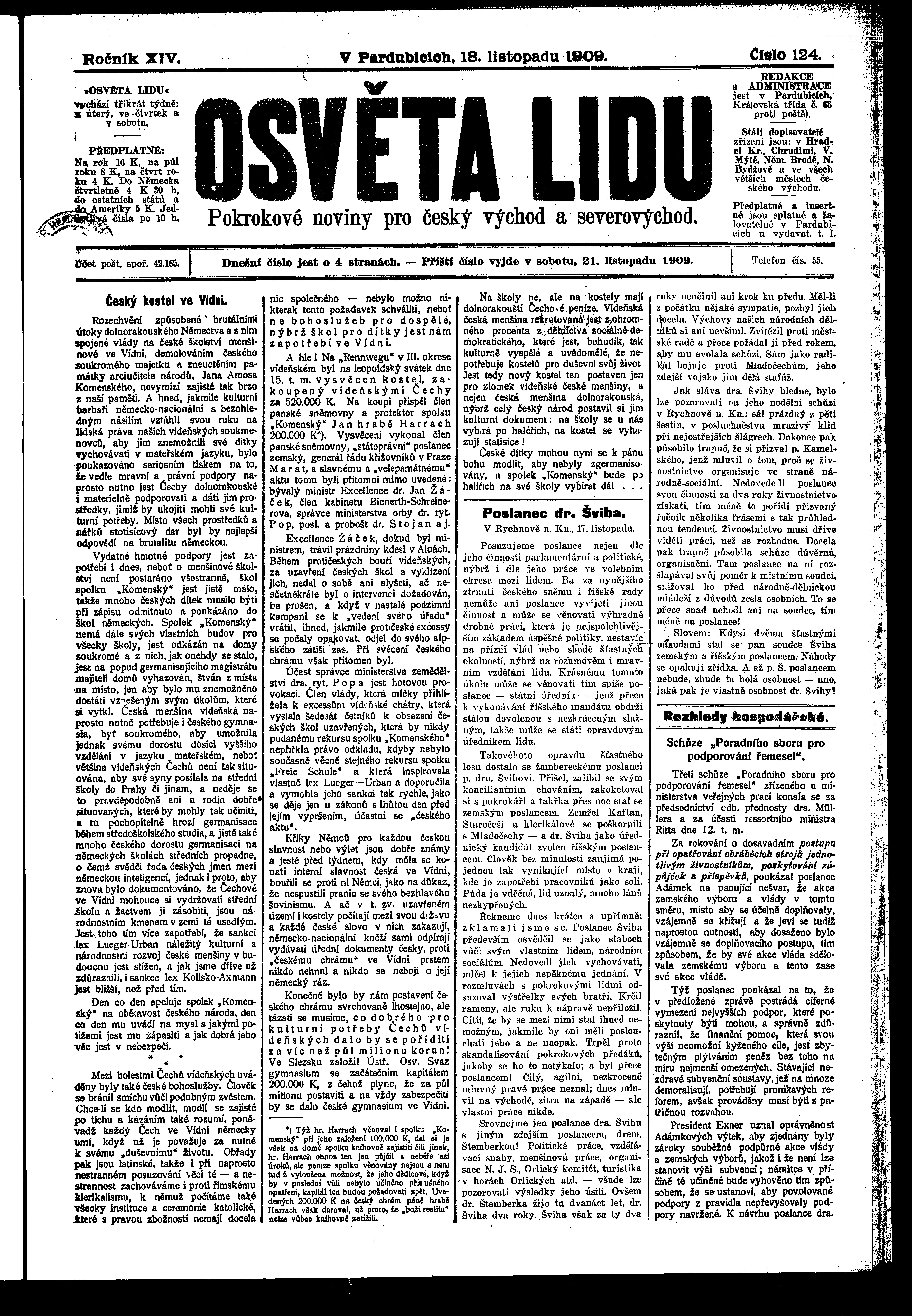 * Datum vydání výtisku: 18.11.1909 Číslo výtisku: 124 Poznámky k výtisku: ranní vydání