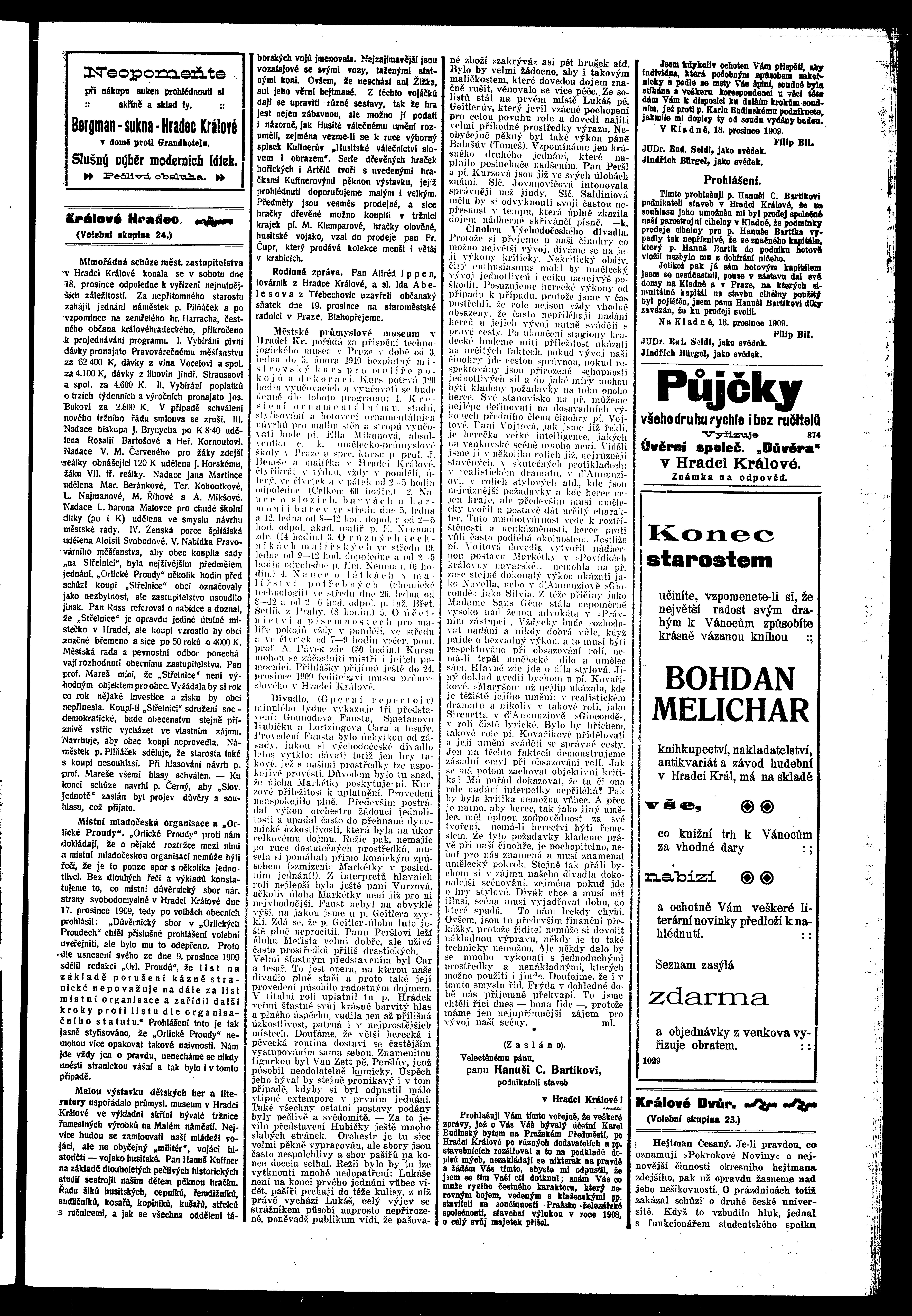 * Datum vydání výtisku: 21.12.1909 Číslo výtisku: 138 Poznámky k výtisku: ranní vydání