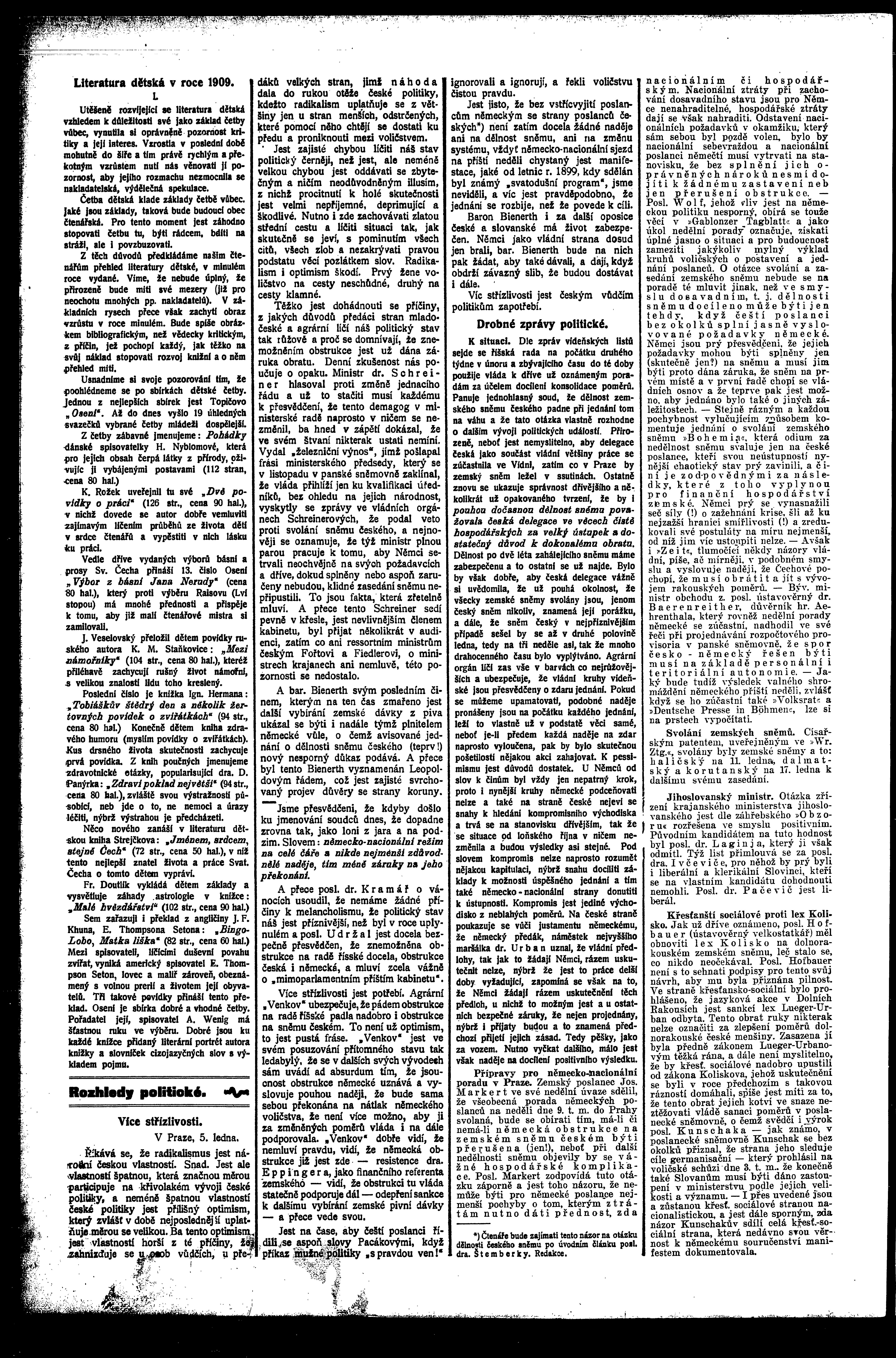* Datum vydání výtisku: 5.1.1910 Číslo výtisku: 1 Poznámky k výtisku: ranní vydání
