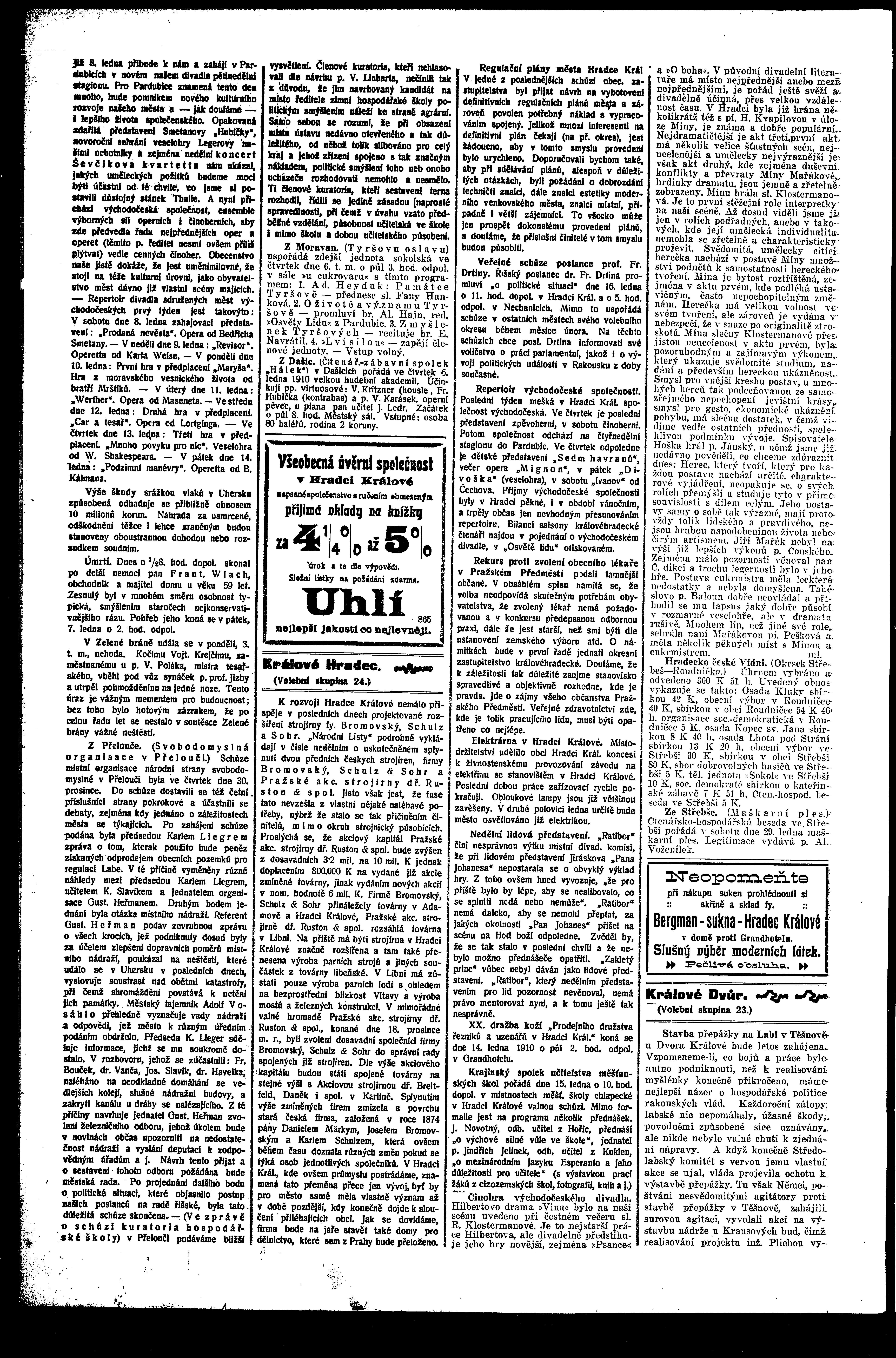* Datum vydání výtisku: 5.1.1910 Číslo výtisku: 1 Poznámky k výtisku: ranní vydání