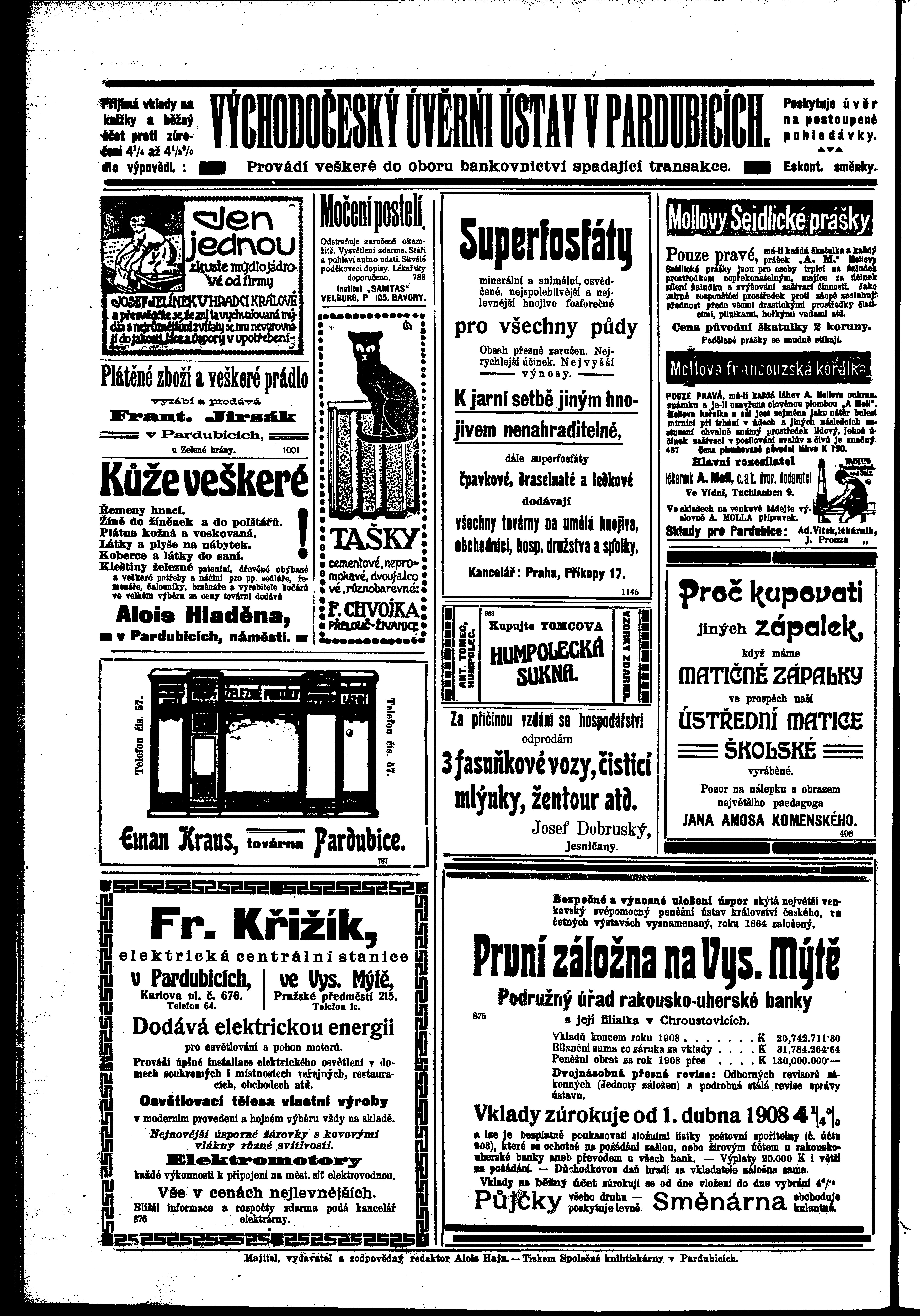 * Datum vydání výtisku: 22.1.1910 Číslo výtisku: 8 Poznámky k výtisku: ranní vydání