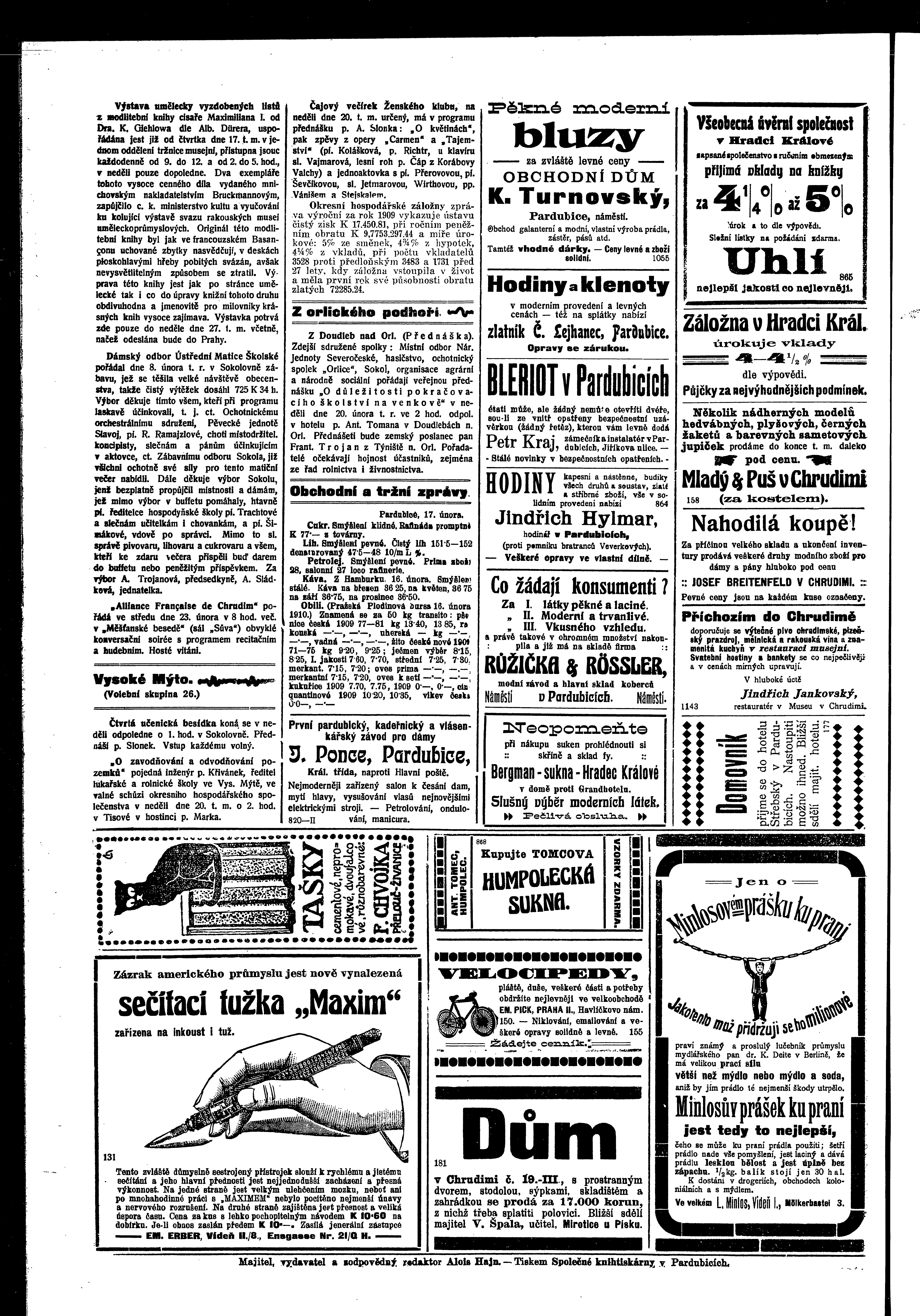 * Datum vydání výtisku: 17.2.1910 Číslo výtisku: 19 Poznámky k výtisku: ranní vydání