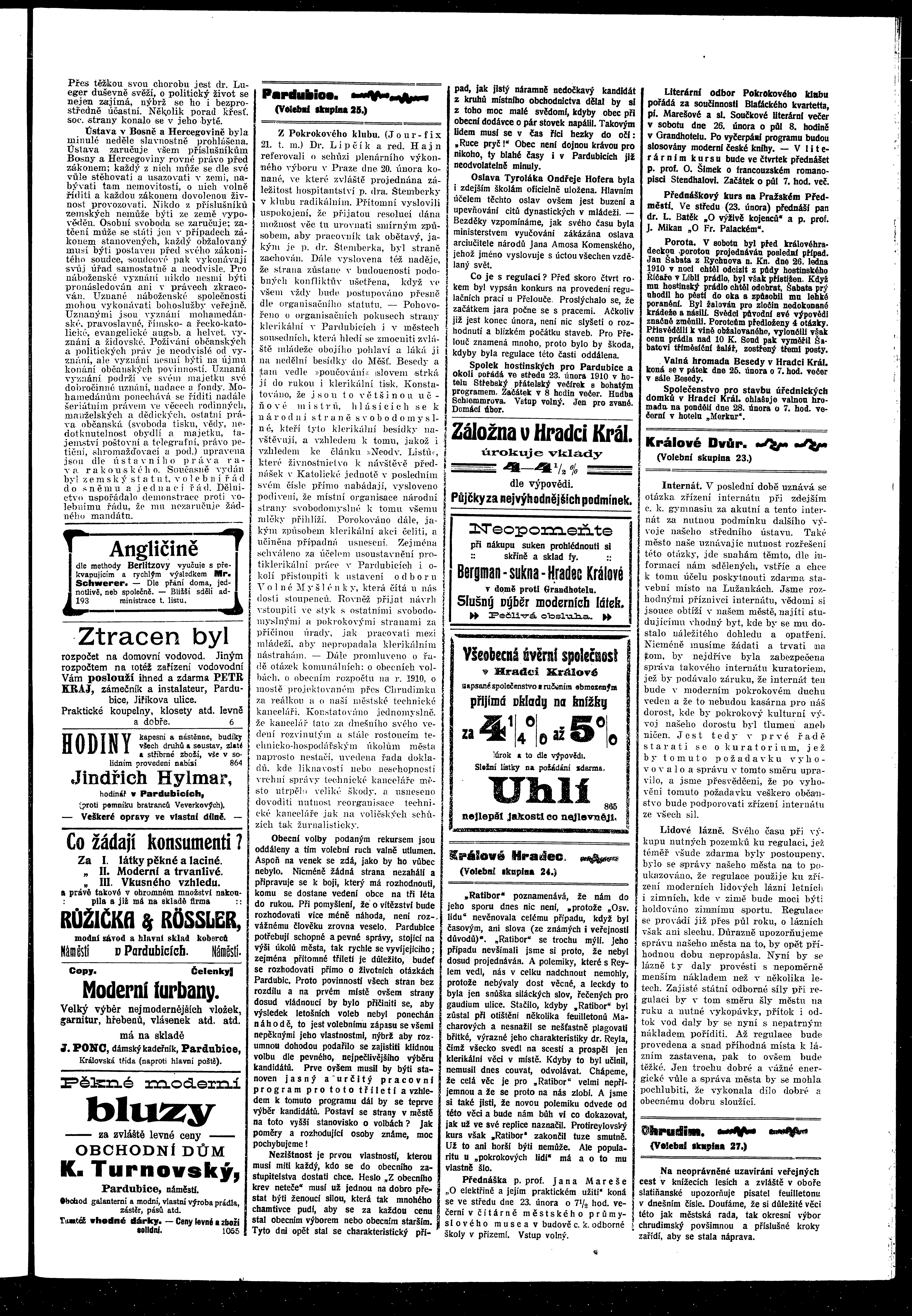 * Datum vydání výtisku: 22.2.1910 Číslo výtisku: 21 Poznámky k výtisku: ranní vydání