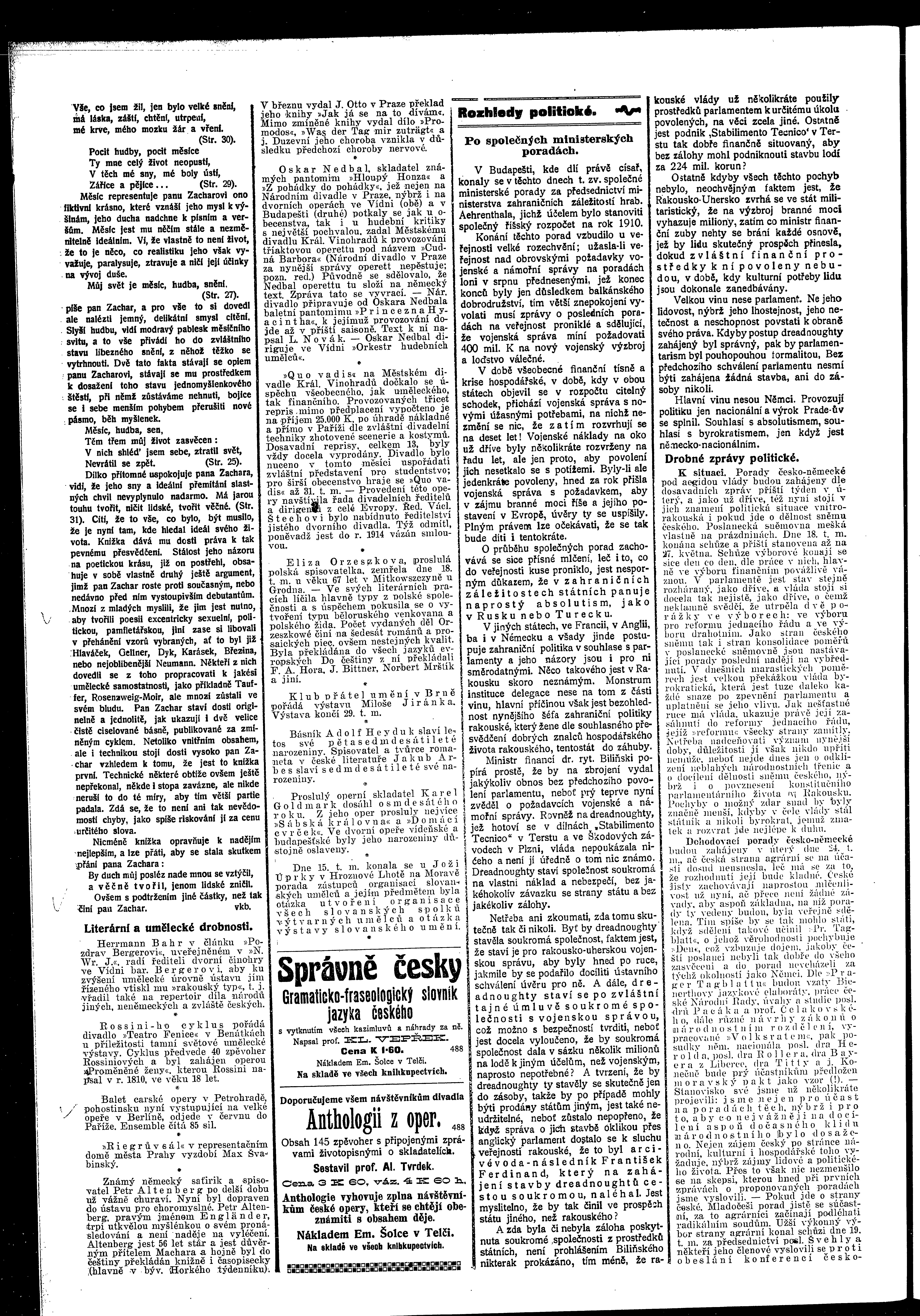 * Datum vydání výtisku: 21.5.1910 Číslo výtisku: 57 Poznámky k výtisku: ranní vydání