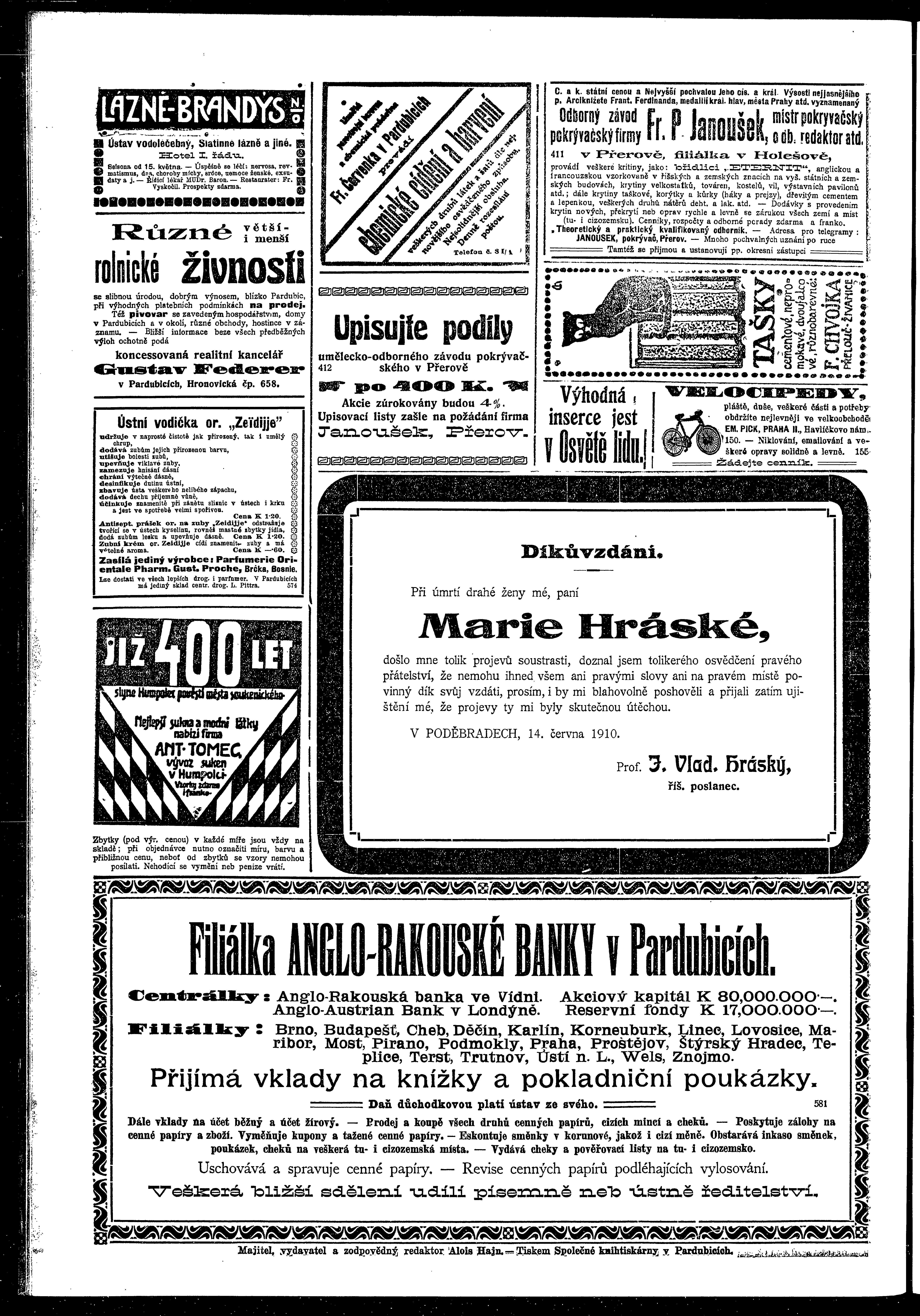 * Datum vydání výtisku: 16.6.1910 Číslo výtisku: 68 Poznámky k výtisku: ranní vydání