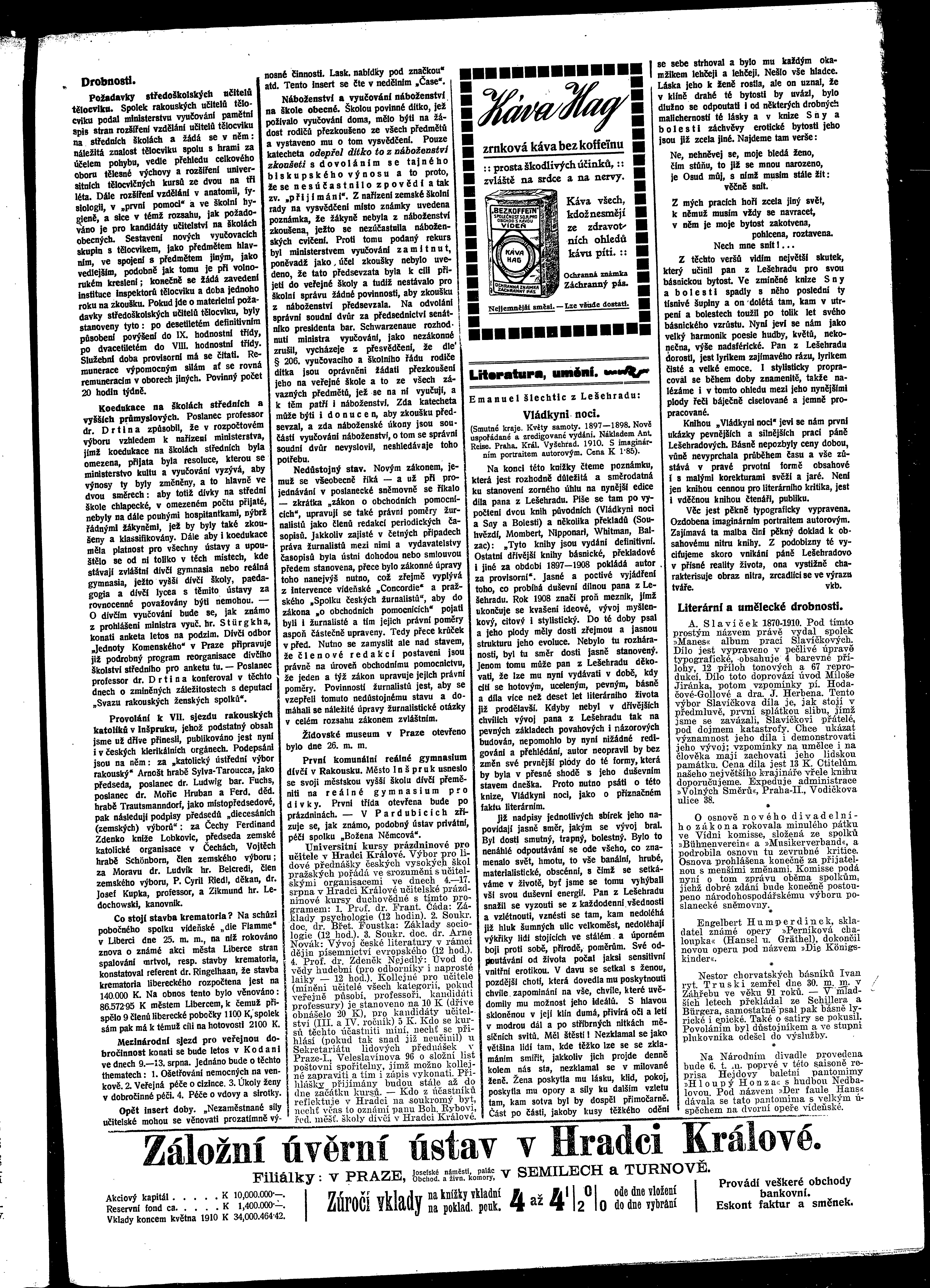 * Datum vydání výtisku: 2.7.1910 Číslo výtisku: 75 Poznámky k výtisku: ranní vydání