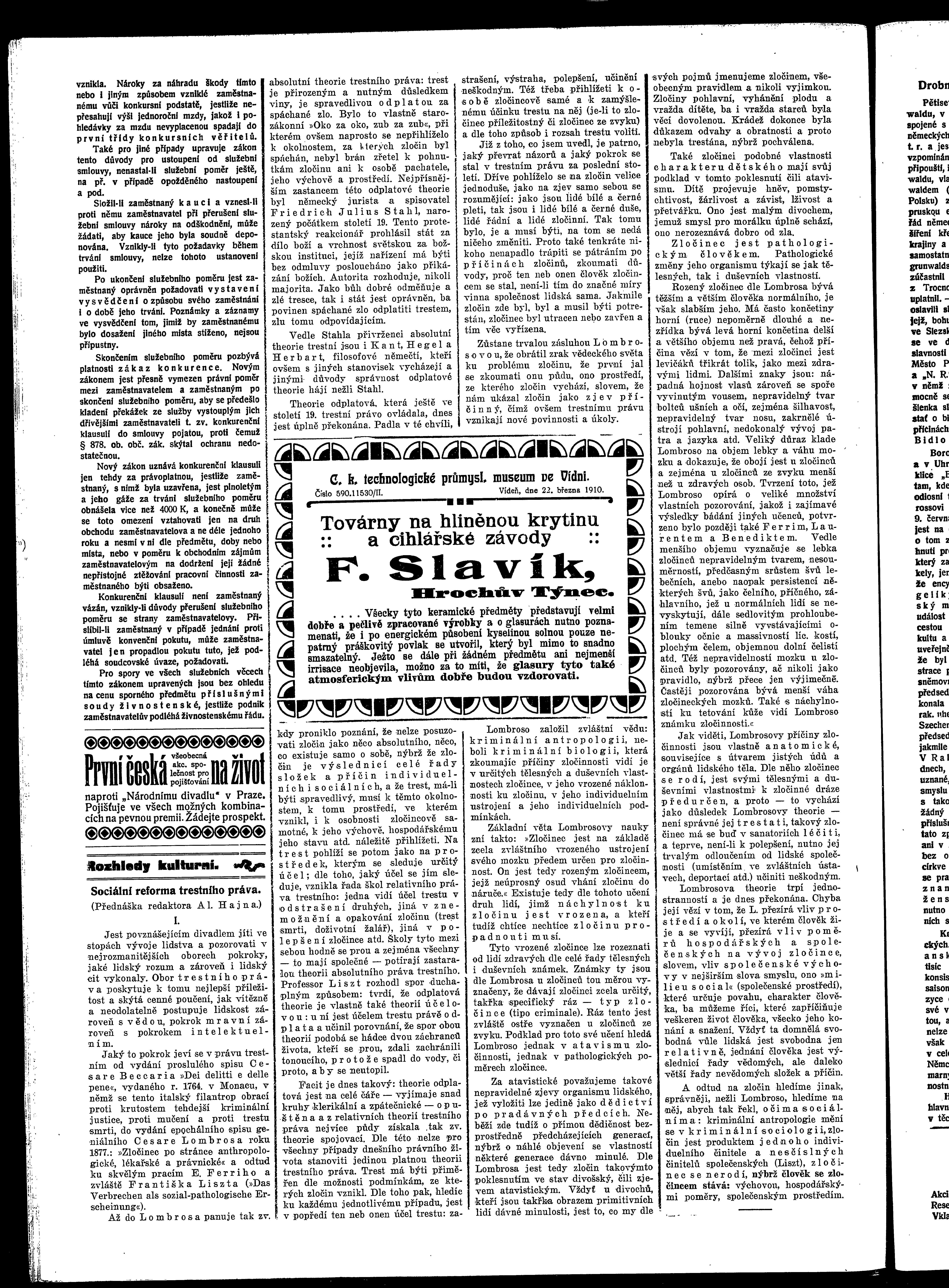 * Datum vydání výtisku: 16.7.1910 Číslo výtisku: 81 Poznámky k výtisku: ranní vydání
