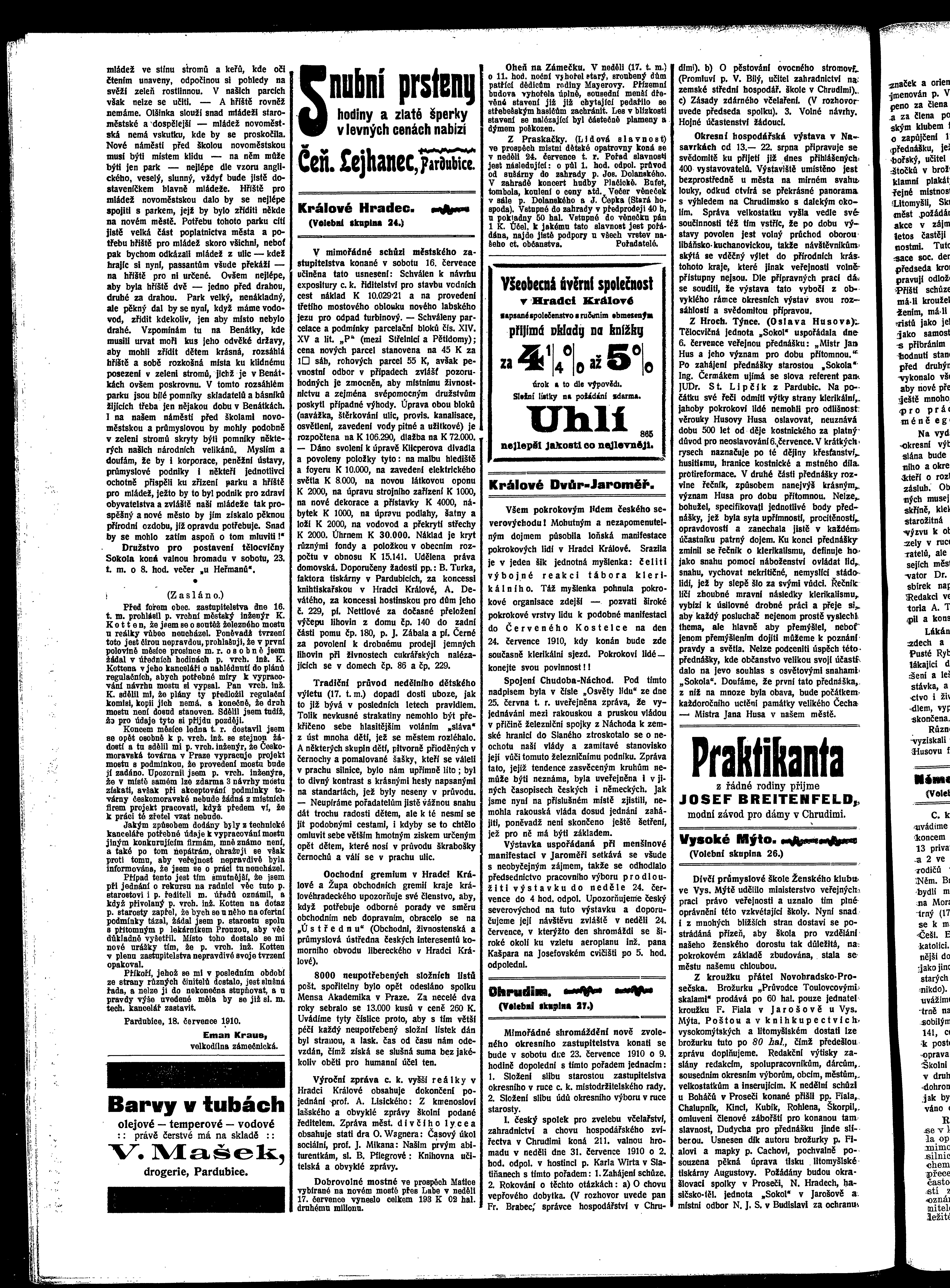 * Datum vydání výtisku: 19.7.1910 Číslo výtisku: 82 Poznámky k výtisku: ranní vydání