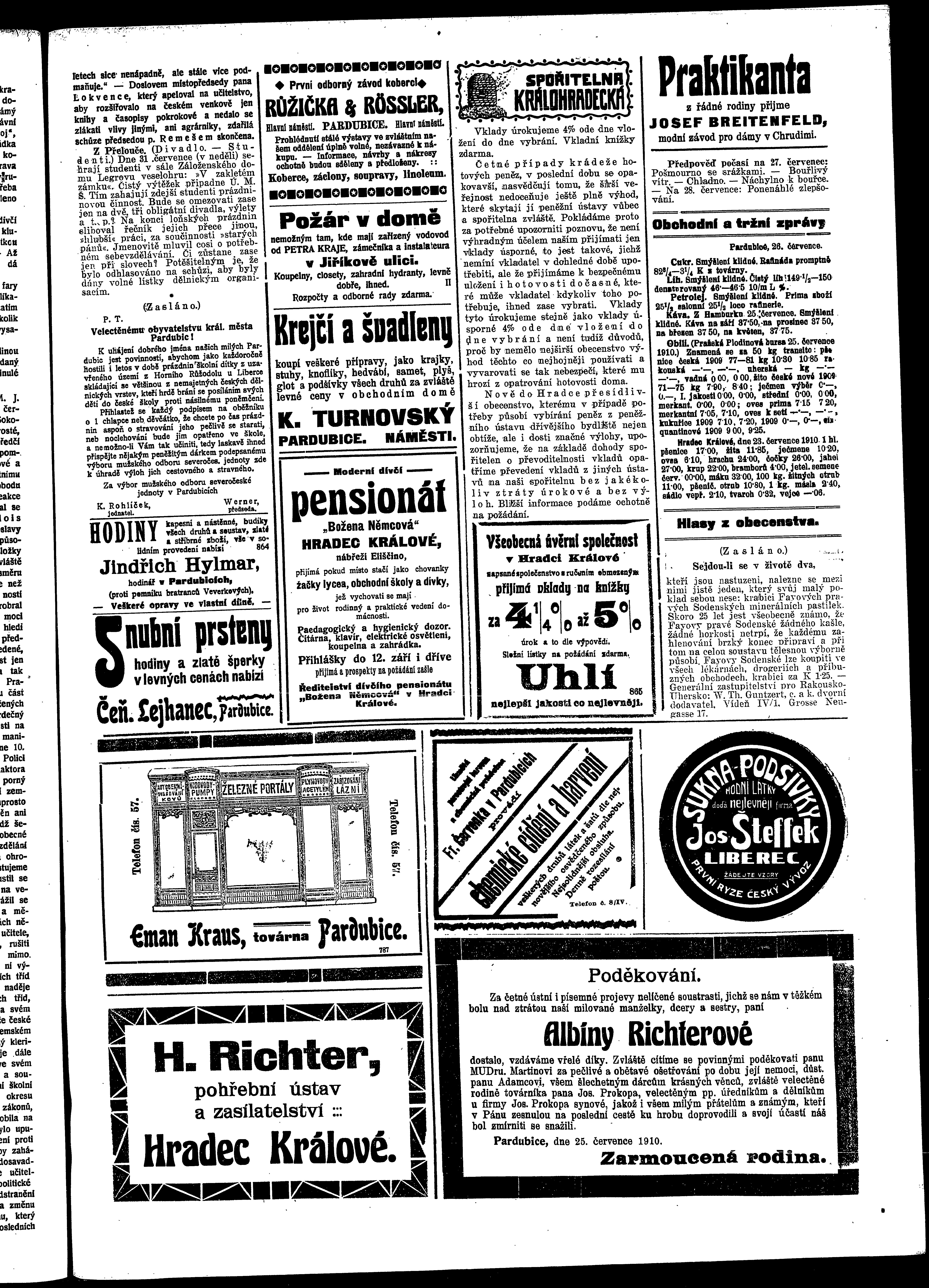 * Datum vydání výtisku: 26.7.1910 Číslo výtisku: 85 Poznámky k výtisku: ranní vydání