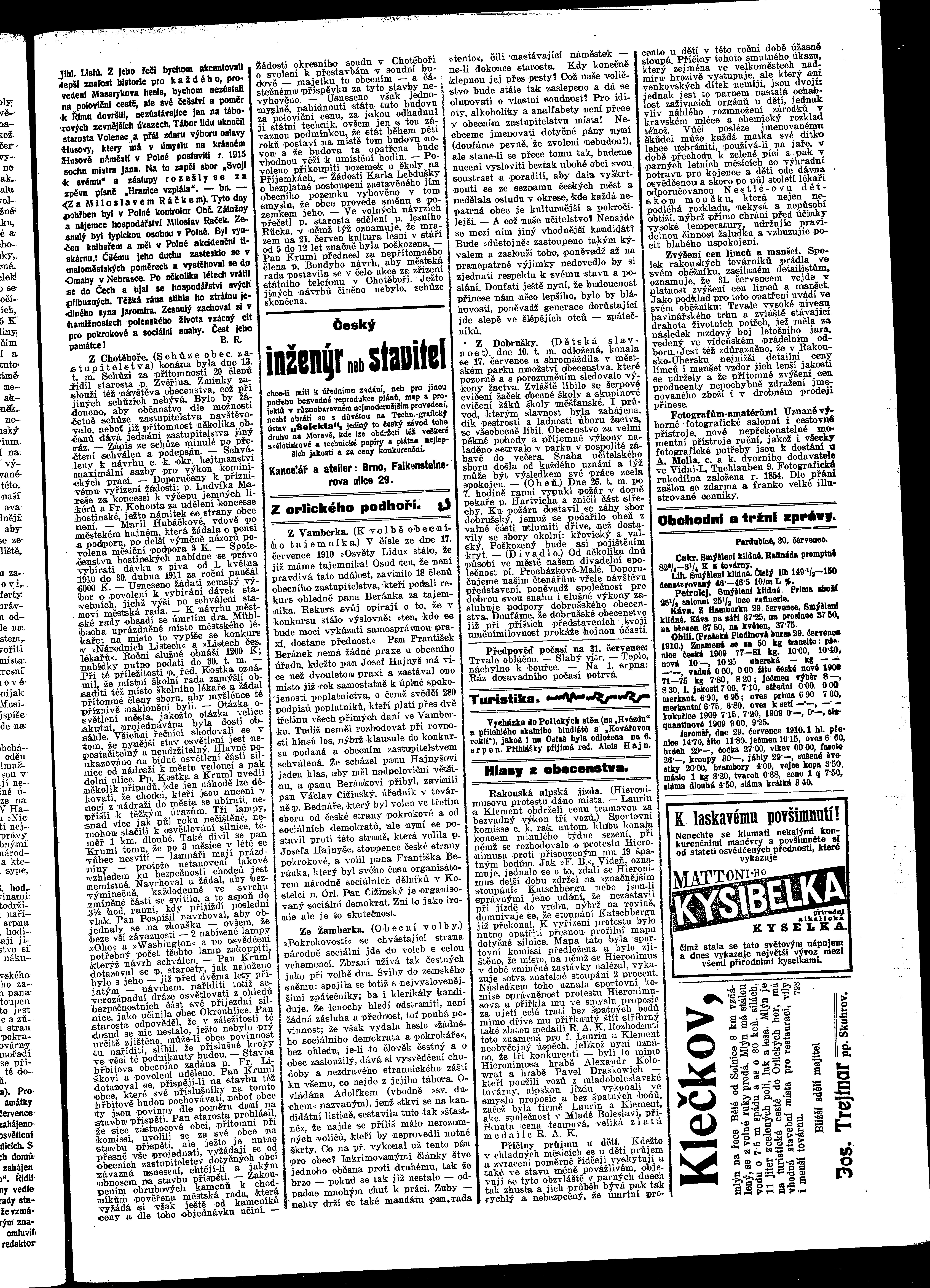 * Datum vydání výtisku: 30.7.1910 Číslo výtisku: 87 Poznámky k výtisku: ranní vydání