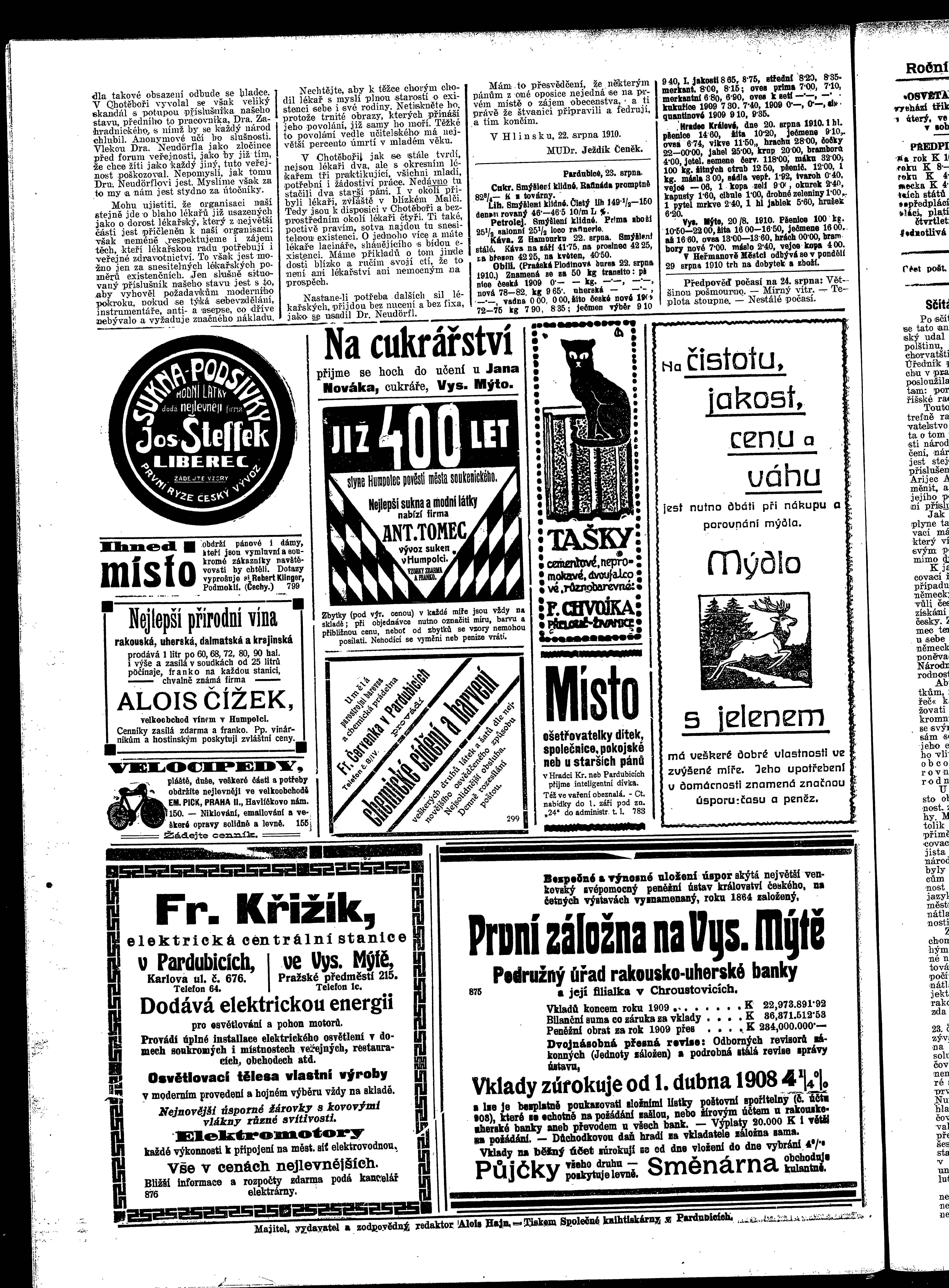 * Datum vydání výtisku: 23.8.1910 Číslo výtisku: 97 Poznámky k výtisku: ranní vydání