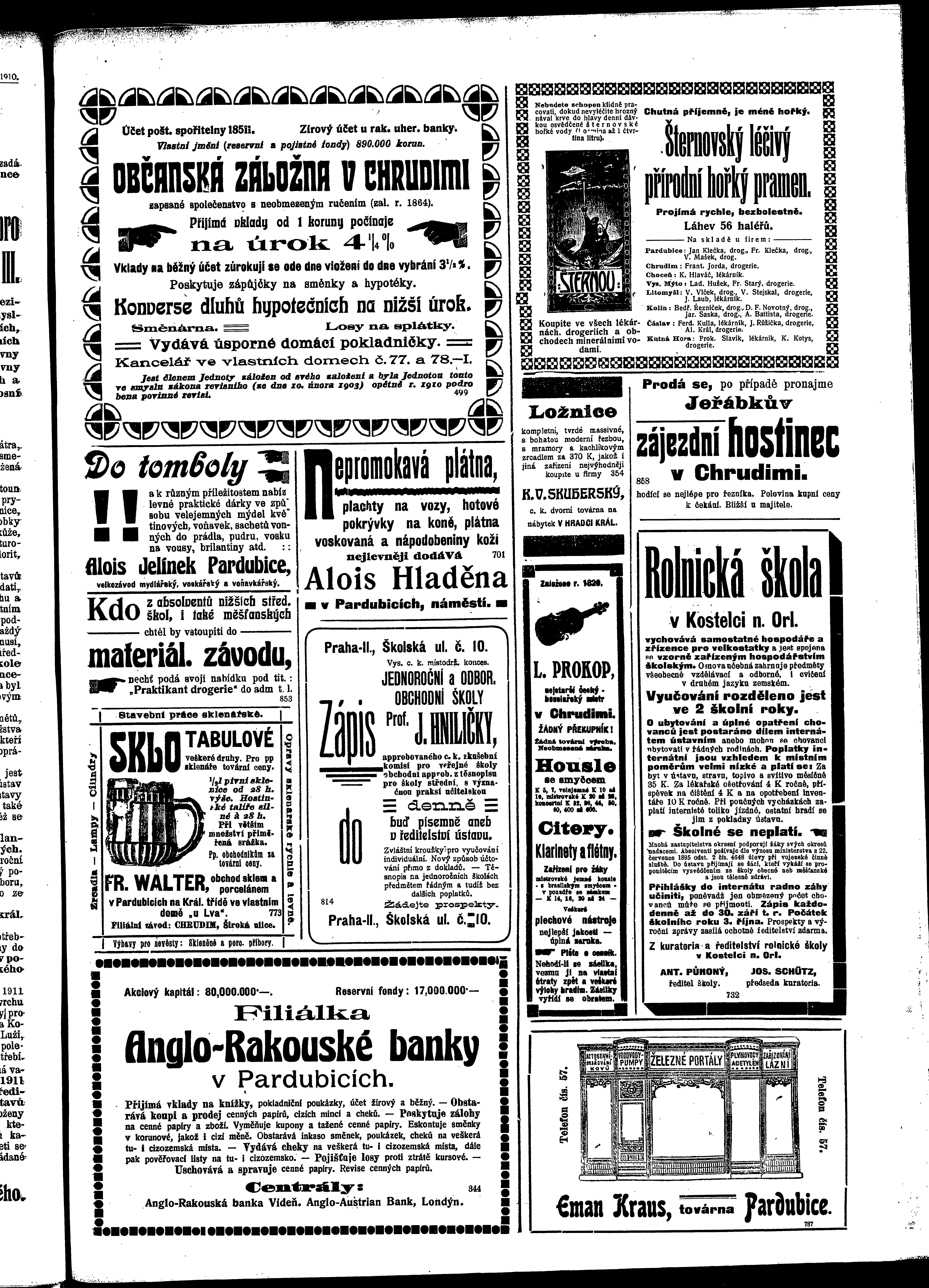 * Datum vydání výtisku: 27.8.1910 Číslo výtisku: 99 Poznámky k výtisku: ranní vydání