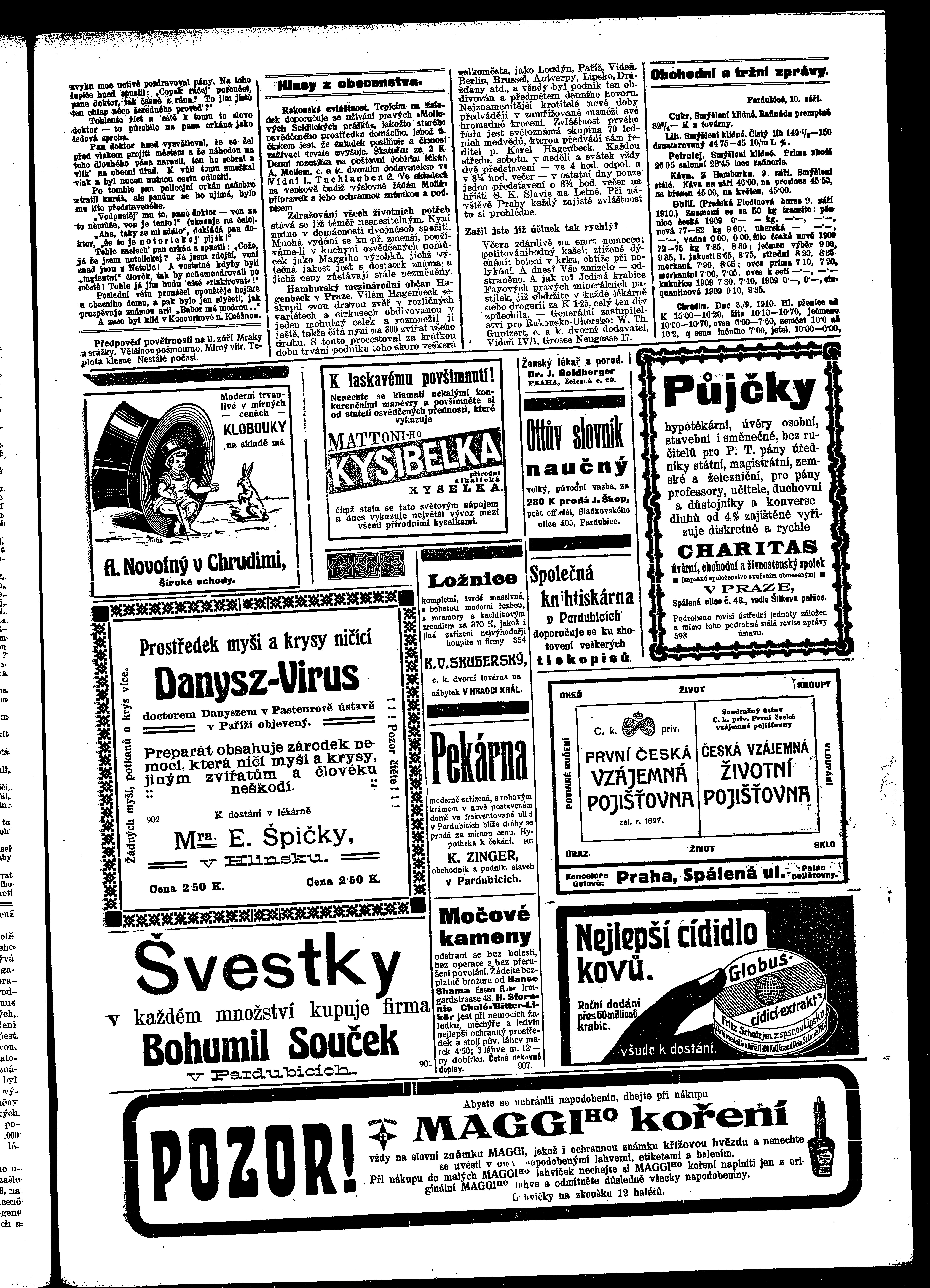 * Datum vydání výtisku: 10.9.1910 Číslo výtisku: 105 Poznámky k výtisku: ranní vydání