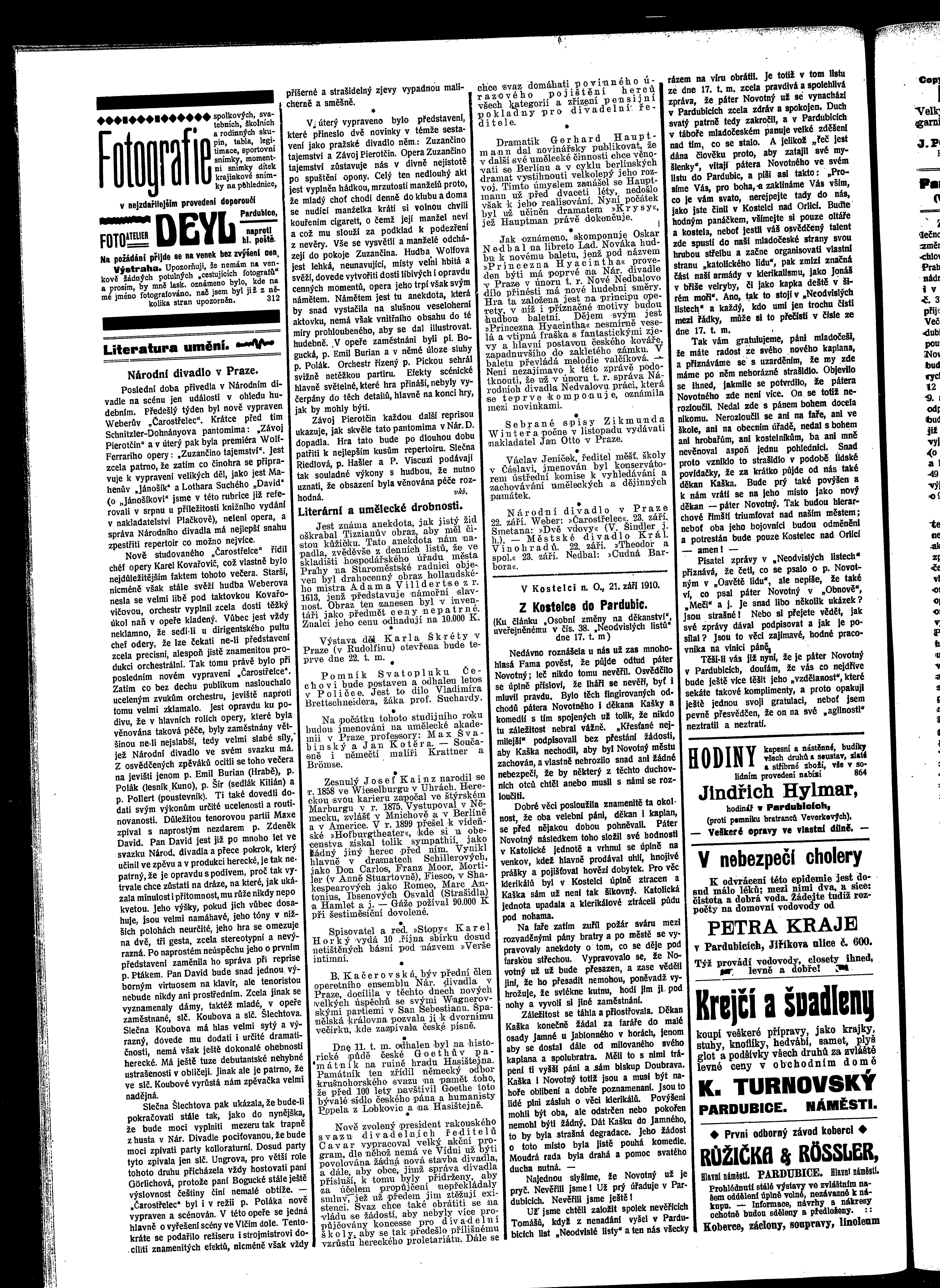 * Datum vydání výtisku: 22.9.1910 Číslo výtisku: 110 Poznámky k výtisku: ranní vydání