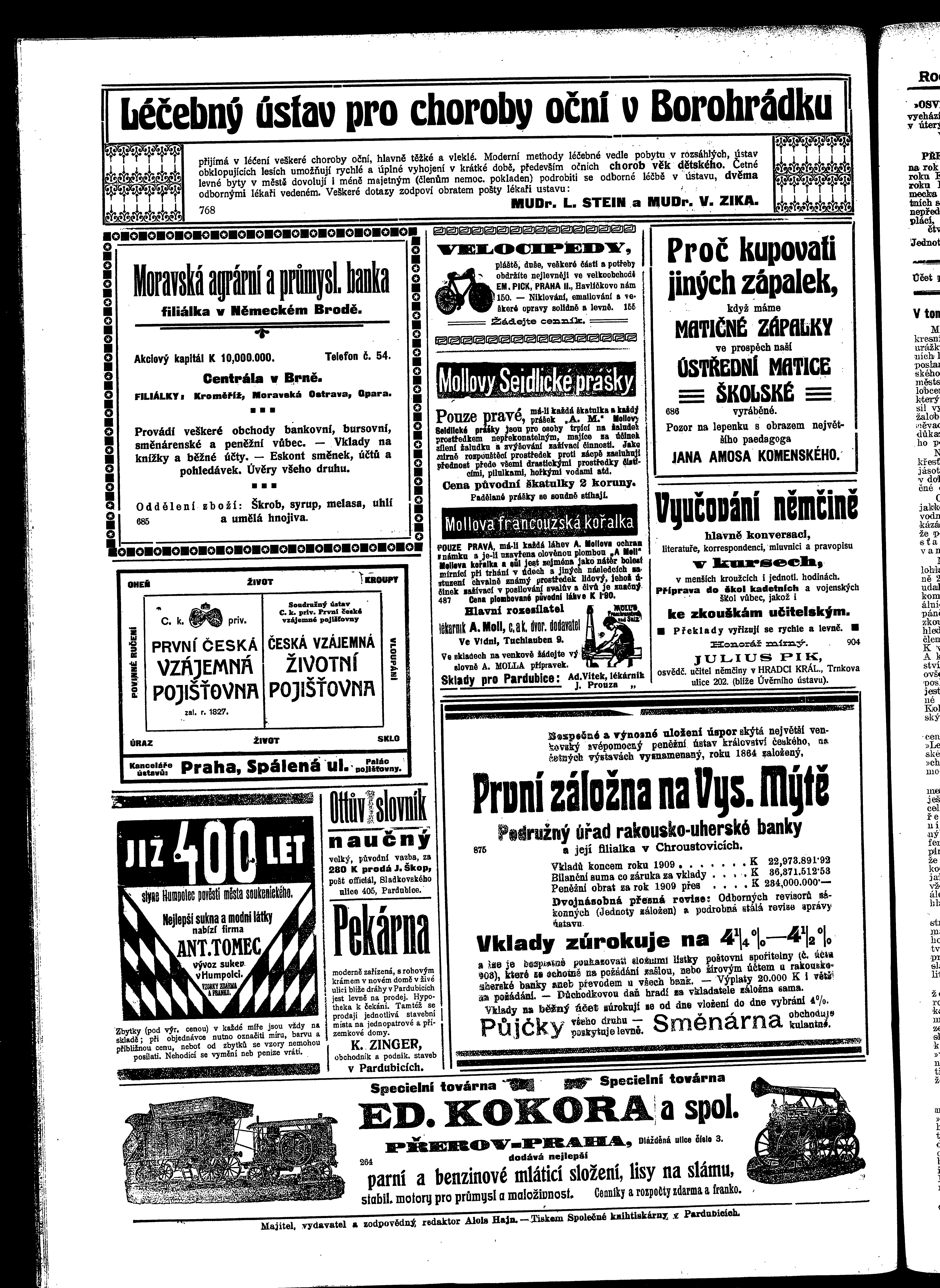 * Datum vydání výtisku: 24.9.1910 Číslo výtisku: 111 Poznámky k výtisku: ranní vydání