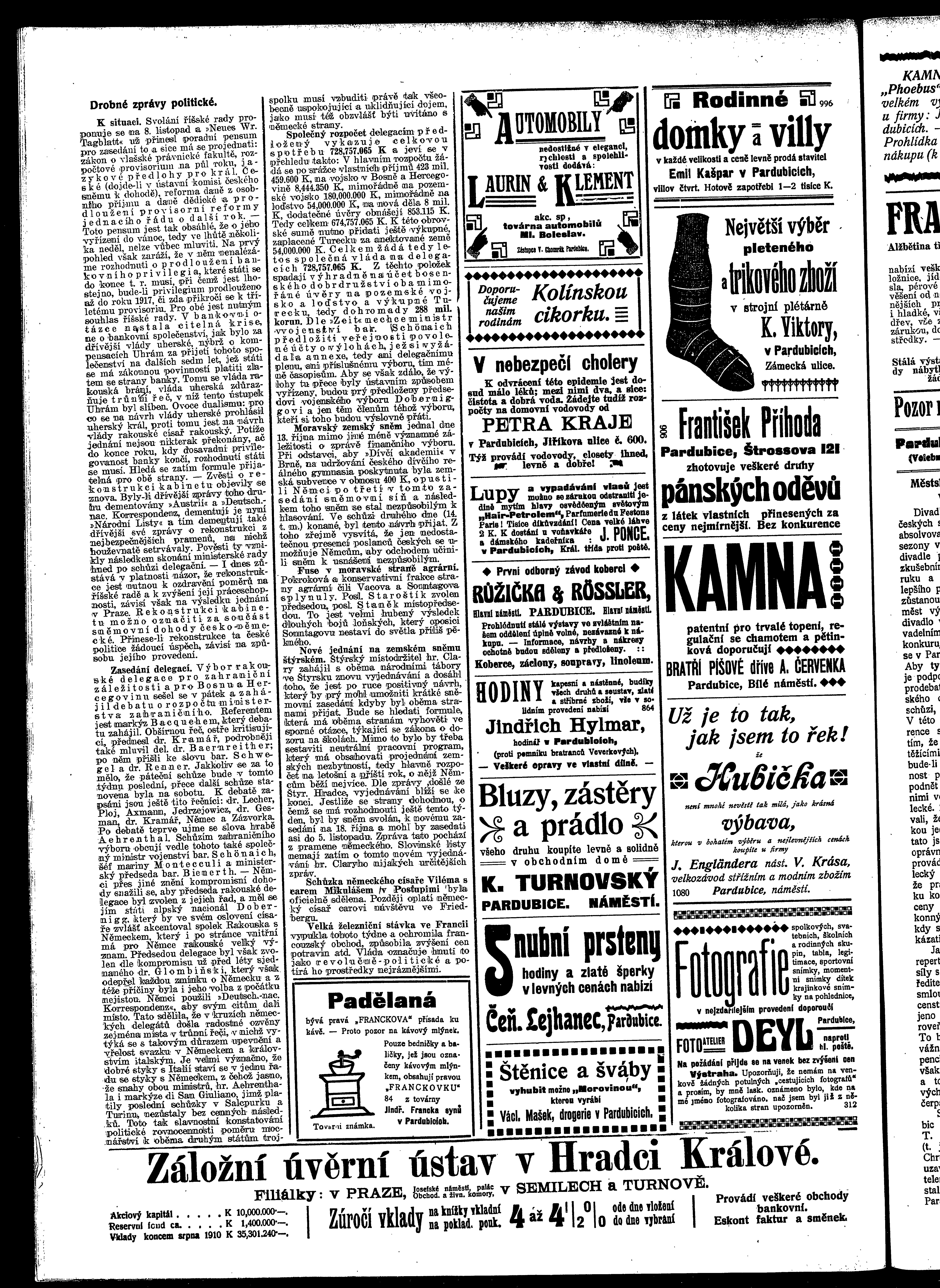 * Datum vydání výtisku: 15.10.1910 Číslo výtisku: 120 Poznámky k výtisku: ranní vydání
