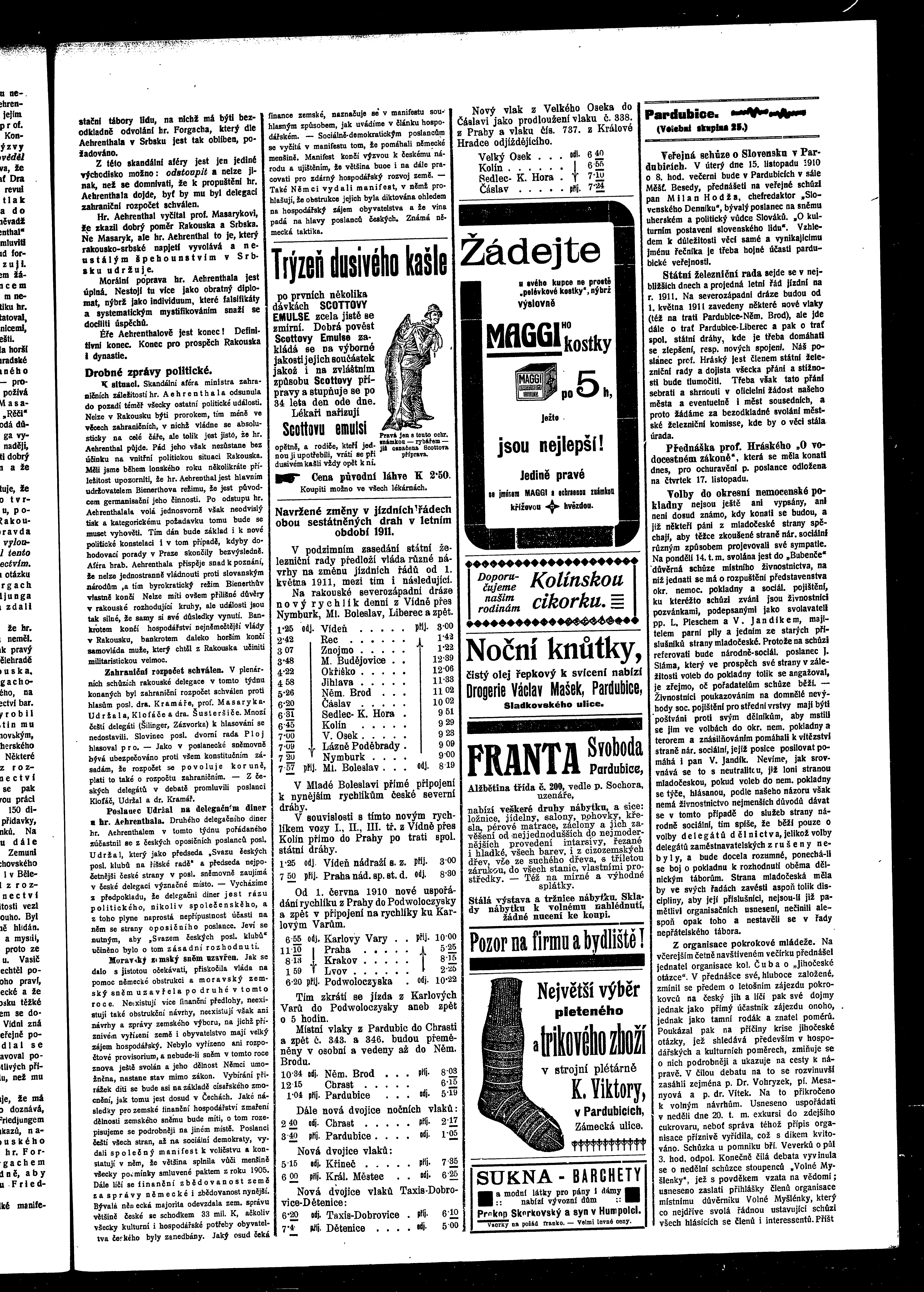 * Datum vydání výtisku: 12.11.1910 Číslo výtisku: 132 Poznámky k výtisku: ranní vydání