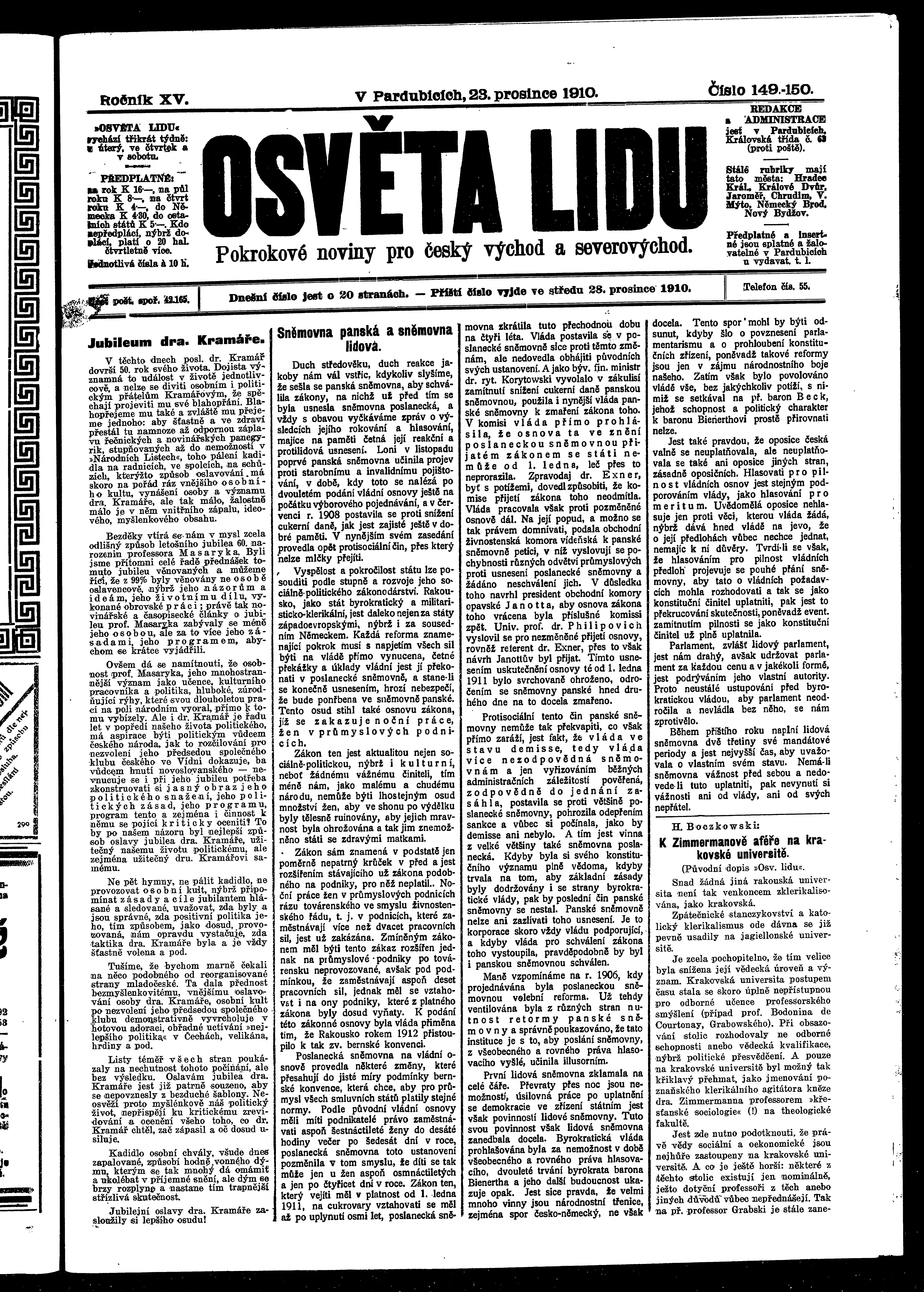 * Datum vydání výtisku: 23.12.1910 Číslo výtisku: 149 - 150 Poznámky k výtisku: ranní vydání