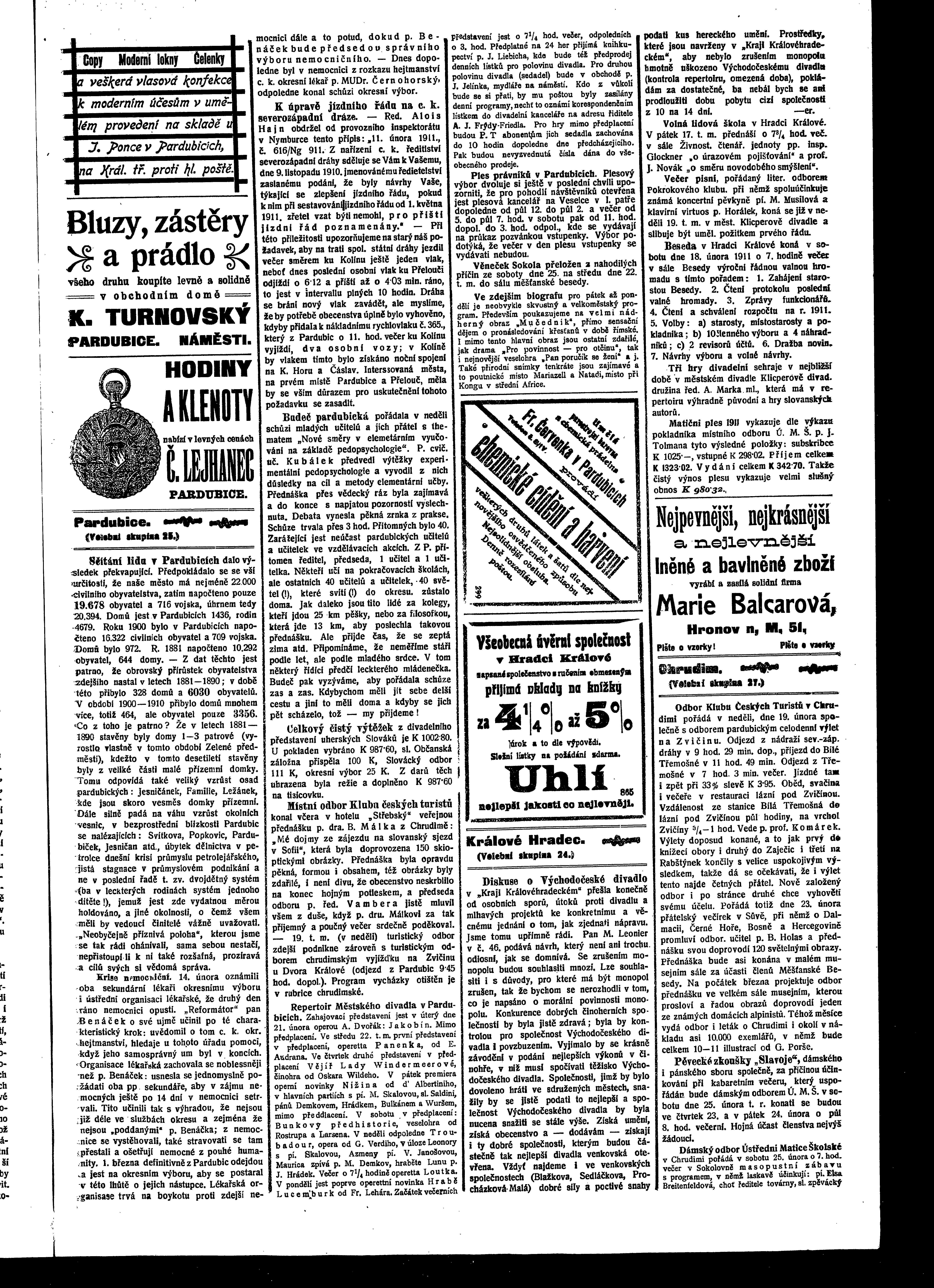 * Datum vydání výtisku: 16.2.1911 Číslo výtisku: 21 Poznámky k výtisku: ranní vydání