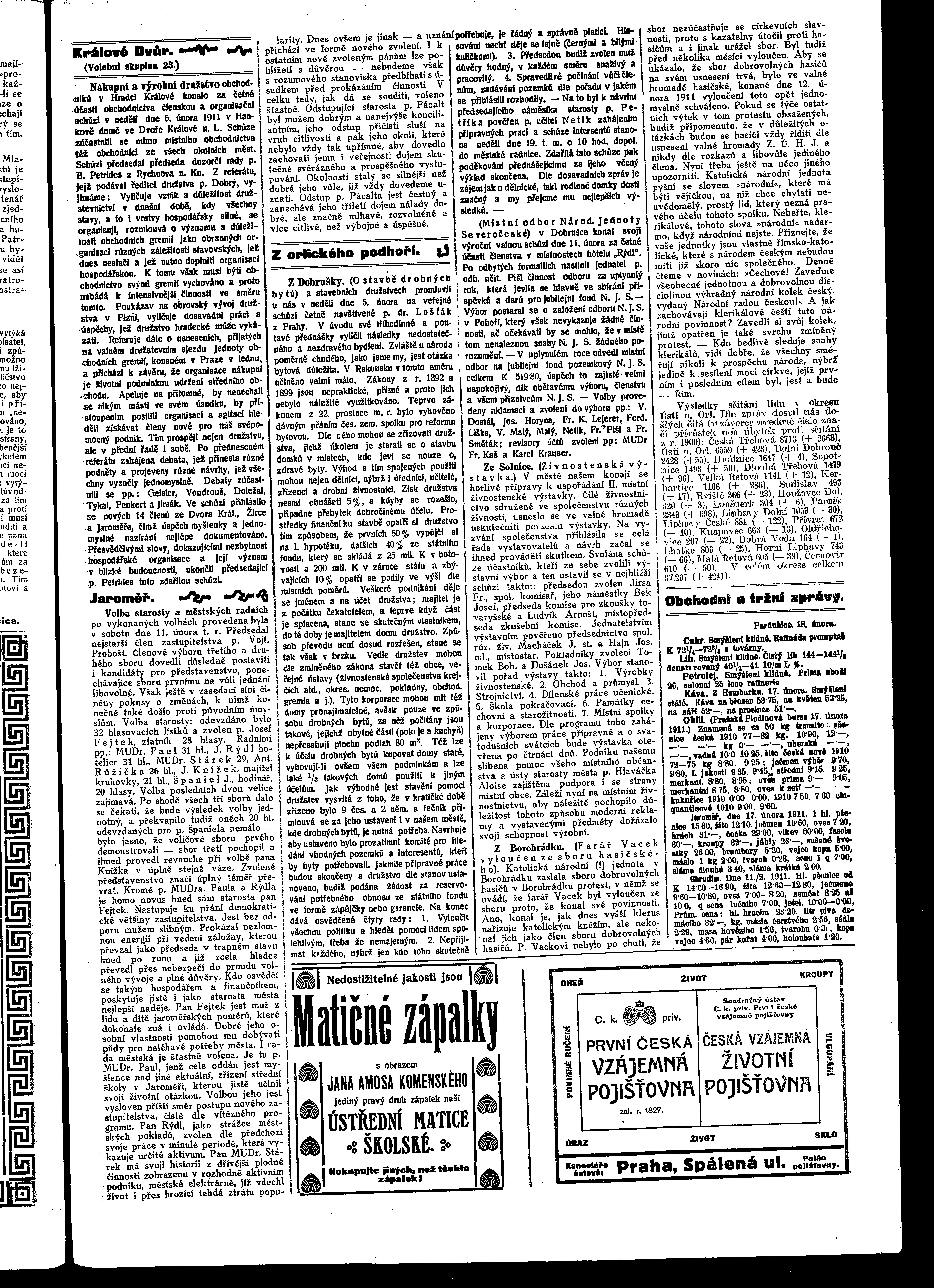 * Datum vydání výtisku: 18.2.1911 Číslo výtisku: 22 Poznámky k výtisku: ranní vydání