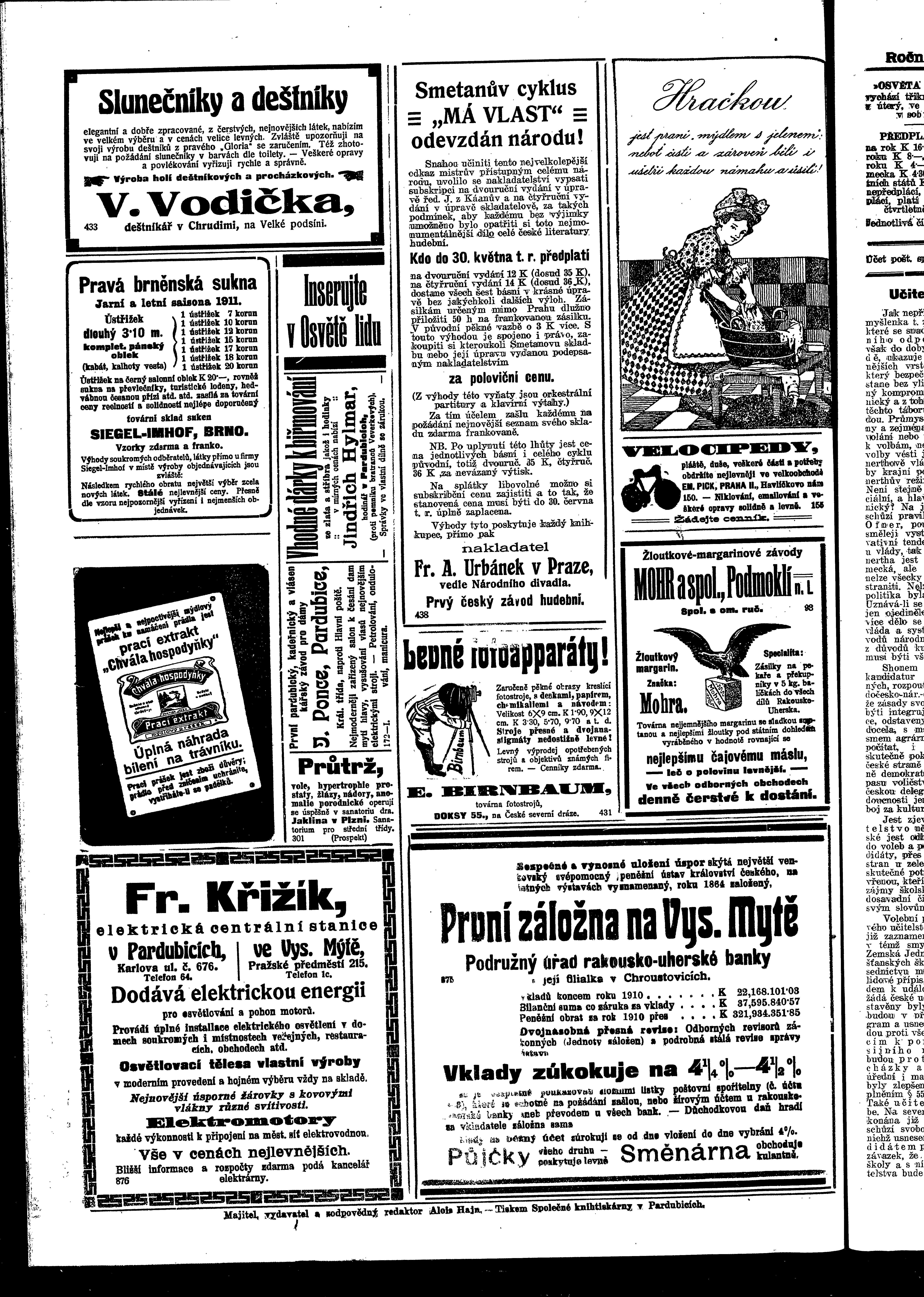 * Datum vydání výtisku: 19.4.1911 Číslo výtisku: 47 - 48 Poznámky k výtisku: ranní vydání